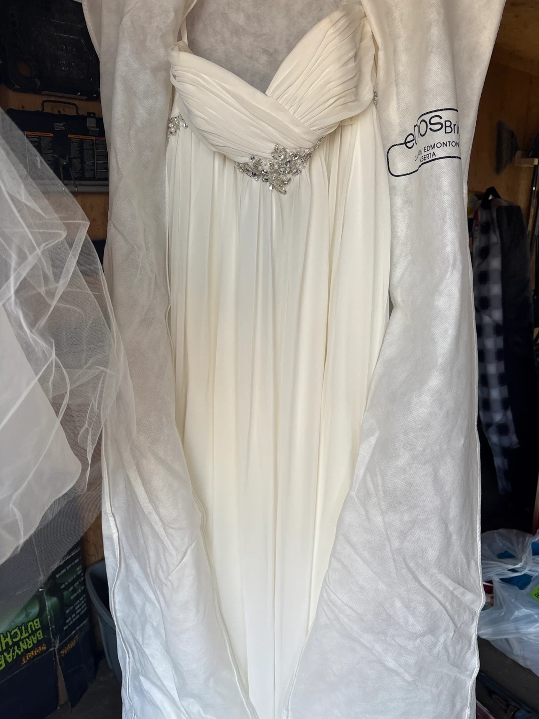 Selling a beautiful wedding dress from Ethos Bridal. It's in great condition and ready for its next special day! The dress comes in a garment bag from Ethos Bridal.