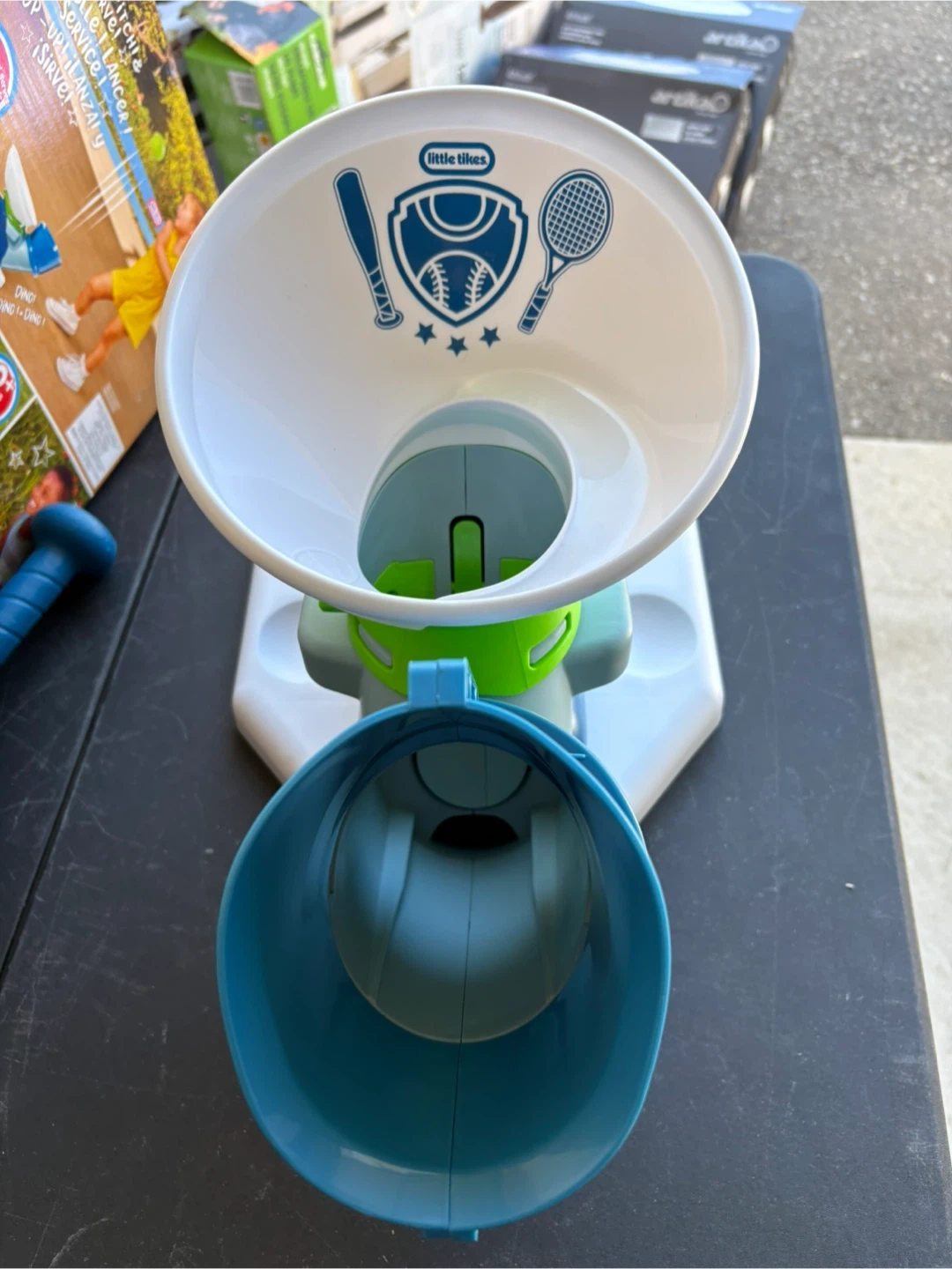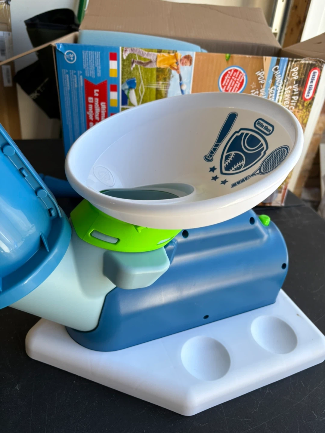 π Description: Fun and active play with the Little Tikes Pop-Up Pitch & Serve! ππΎ Place the ball in the funnel, it automatically pops up, and kids can hit it with the bat or racket. Great for developing hand-eye coordination and sports skills. β Includes: β’ Ball launcher unit β’ 1 Baseball bat β’ 1 Tennis racket β’ 3 balls (2 green + 1 white) β’ Instruction sheet π Power: Requires 4 D batteries (not included). π§π¦ Recommended for ages 3+. πΈ Clean and complete, as shown in the pictures. β οΈ No warranty. Final price, no bargaining.