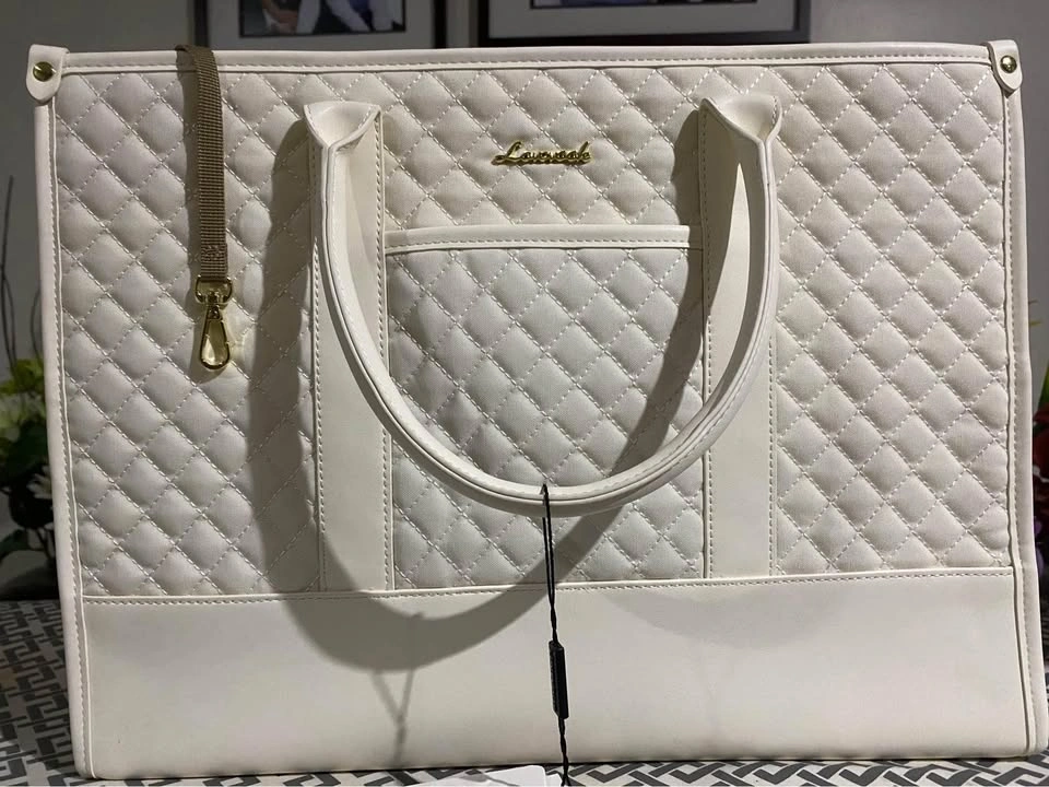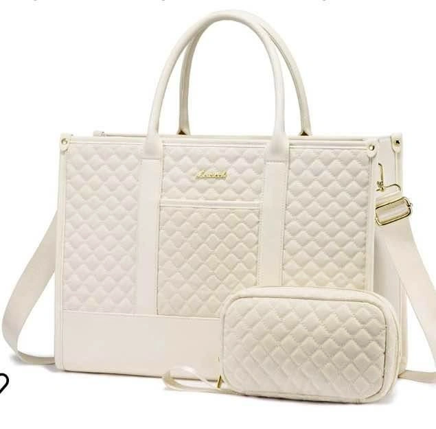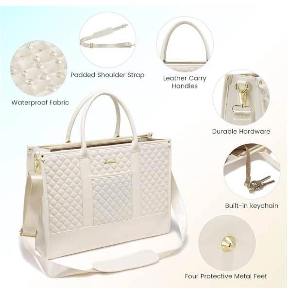 Professional Computer Purse Lightweight Shoulder Bag Travel Quilted Beige