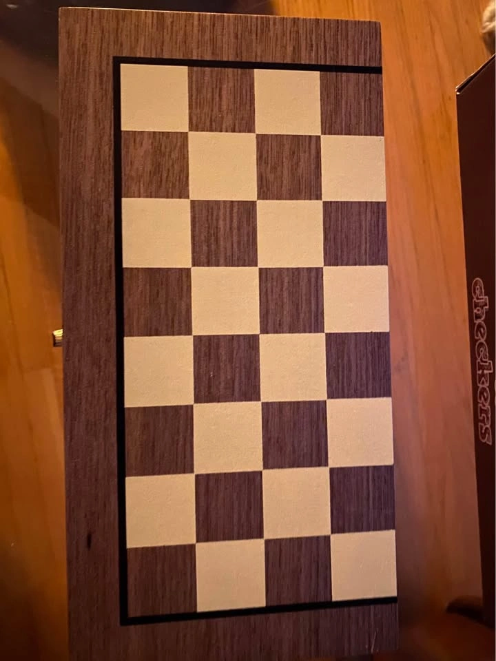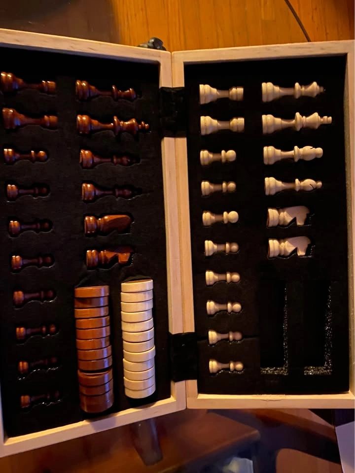 Open size of the board measures 12 x 1 x 12 inches. It comes with a built-in storage for the chess pieces and checkers. Great for a gift!