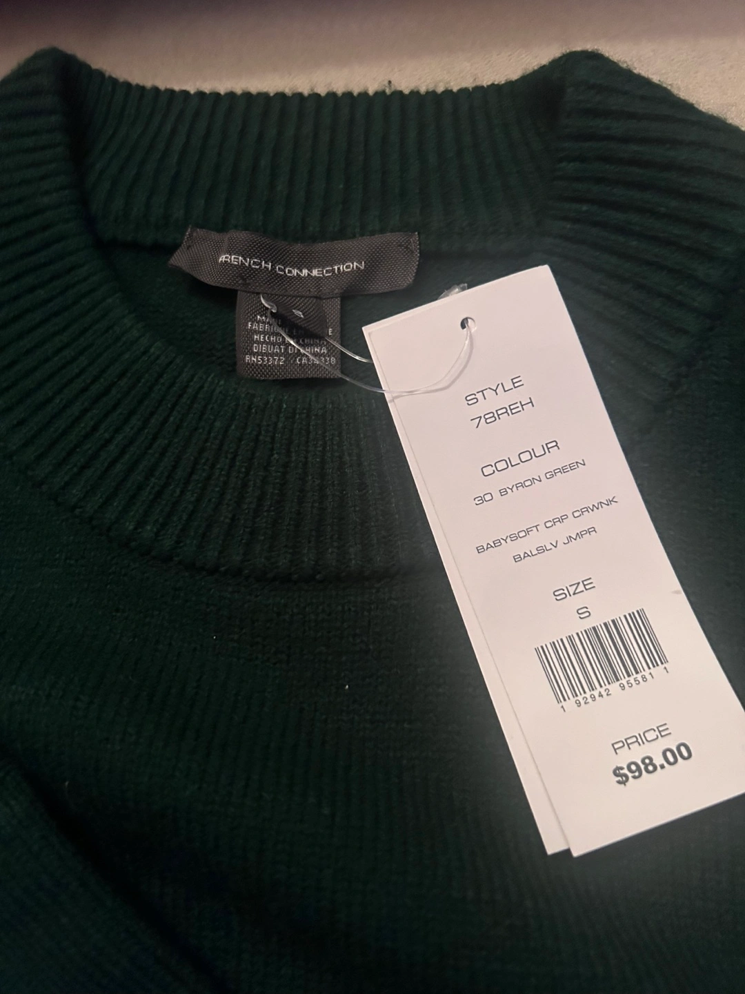 A beautiful French Connection sweater in a lovely Byron Green colour! It's a size small and is made of a soft, comfy material. The style is 78REH. Originally bought for $98.00