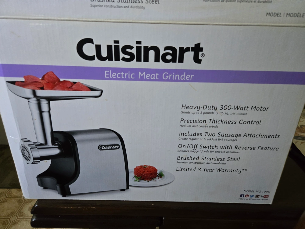 Brand New Electric Meat Grinder . Still in the box with instruction booklet. Regular Price $200.