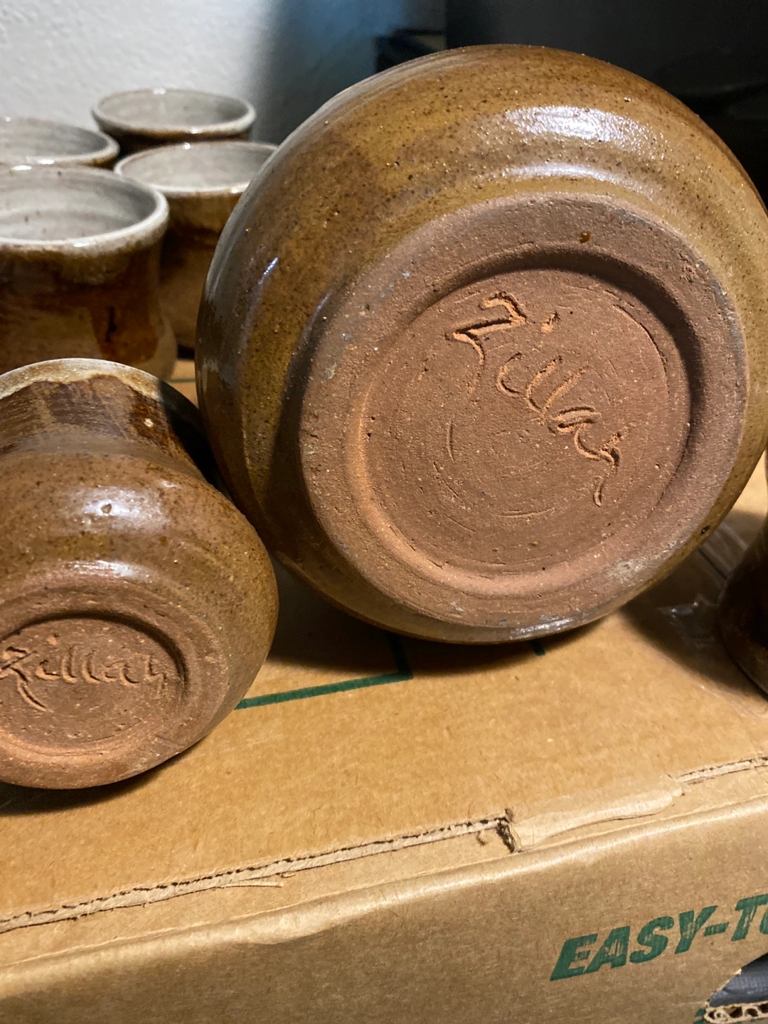 Custom made lovely pottery wine carafe with eight matching cups. The “stopper is made from driftwood from Gabriola Island, BC… the set was handcrafted by “Zillah” The set features earthy tones, perfect for adding a rustic touch to your table setting. The set is in good condition and ready for a new home! Moving Sale Pick up only