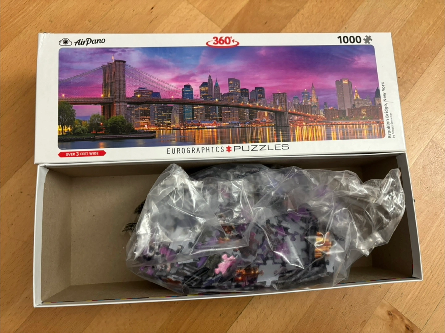 Selling a Eurographics 1000-piece puzzle featuring the Brooklyn Bridge! The puzzle is complete and in great shape. The puzzle size is 39" x 13" - 99 cm x 33 cm. Perfect for puzzle enthusiasts and a fun activity for all ages. New. Sealed. Never used.