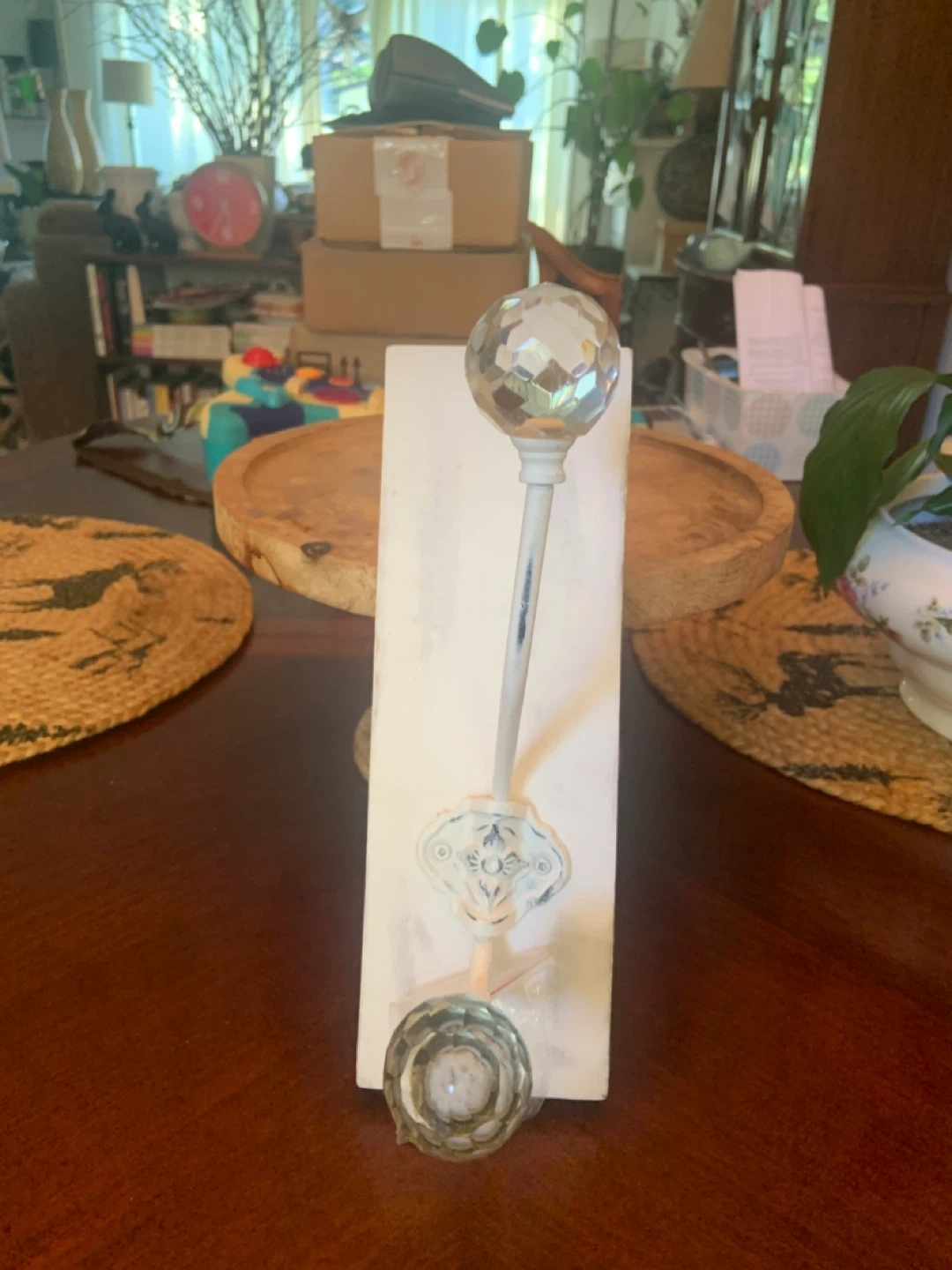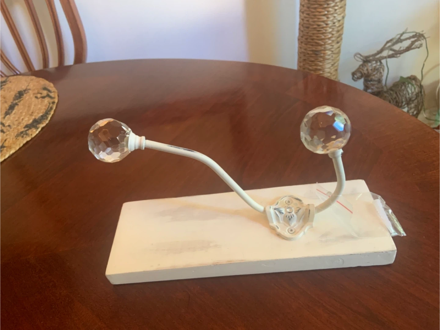 • MAIN INTERSECTIONS ARE HURONTARIO•STEELES JUST BEFORE DOWNTOWN BRAMPTON • VINTAGE WHITE WASH • WOOD • METAL • WALL HOOK•COAT HANGER • ATTACHMENTS INCLUDED ( screw ) • GLASS KNOBS • SIZE• Height ( 10” inches ) Width ( 3.5” inches ) • $20 • PEEL VILLAGE