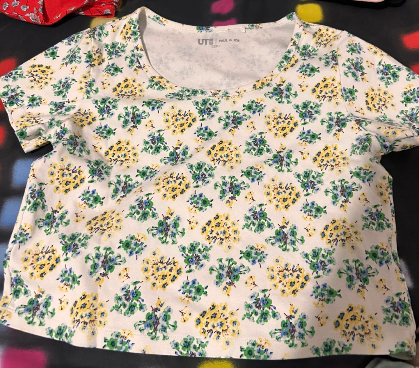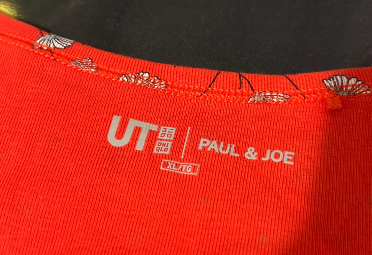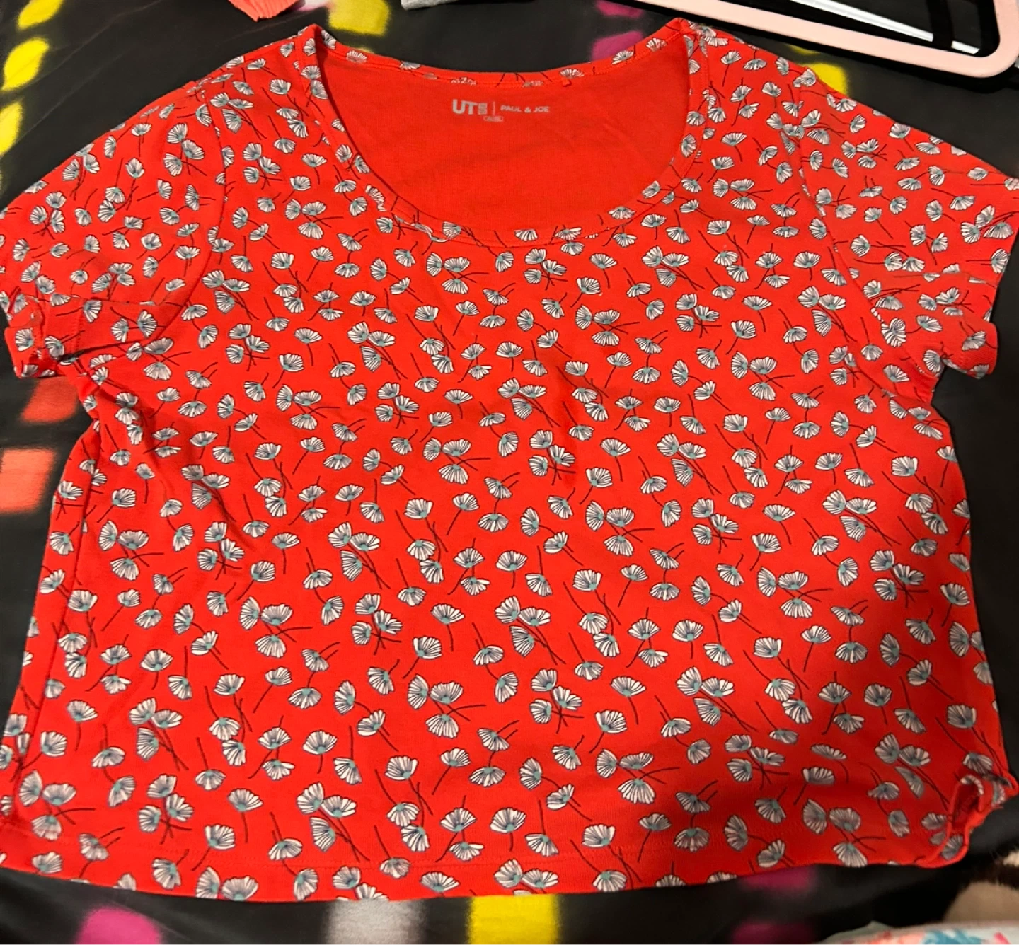 Cute Uniqlo UT Paul & Joe T-shirt! It's a vibrant coral colour with a pretty floral pattern. Size is L/G or XL/TG, depending on the design. Perfect for adding a pop of colour to your wardrobe! $15/top Lets talk for a better price on your liking!