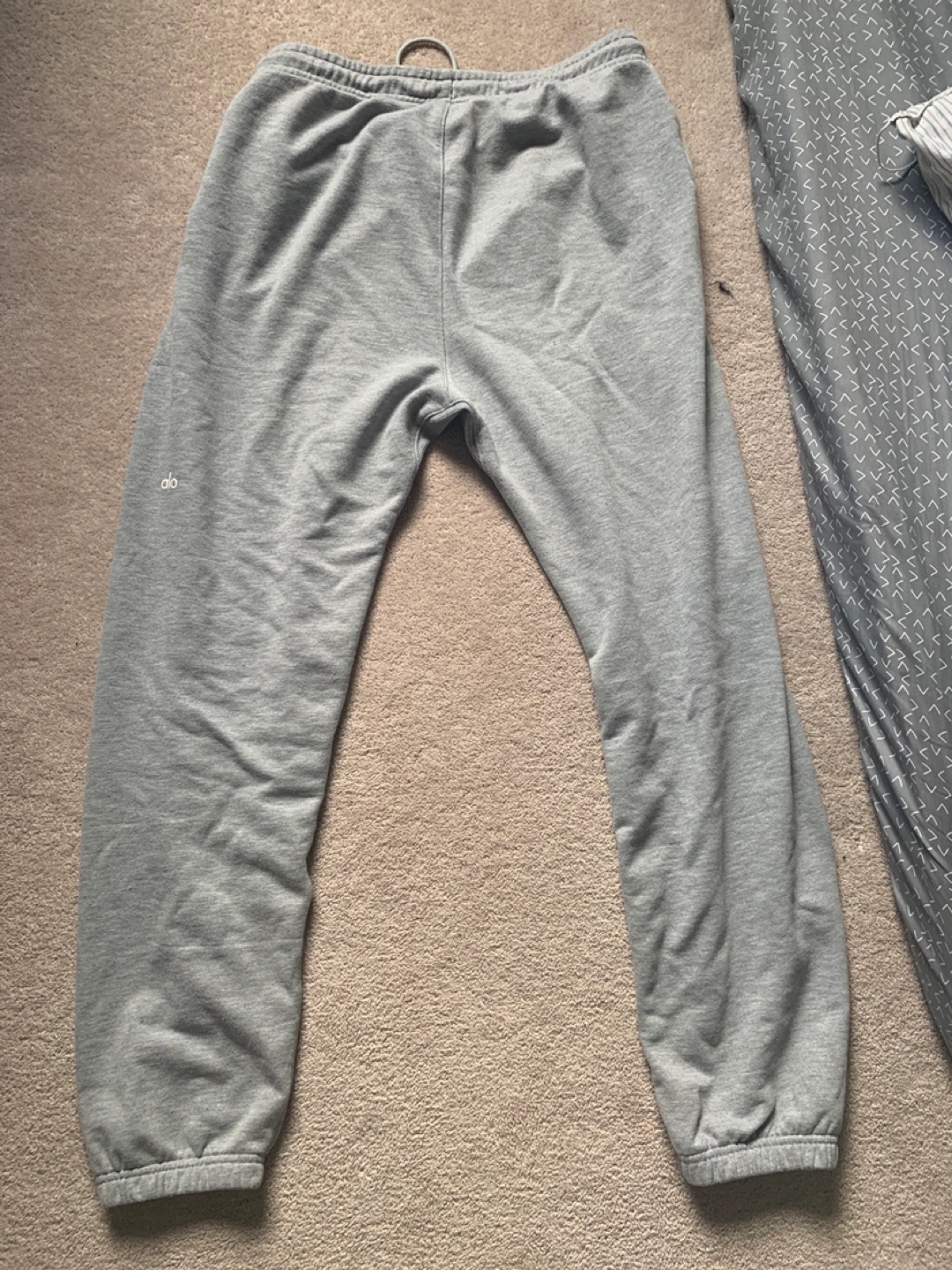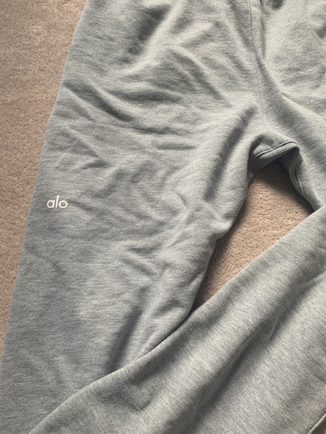 Selling a pair of Alo Yoga sweatpants in a lovely grey colour. They're super comfy and in great condition. Perfect for lounging or hitting the gym!
