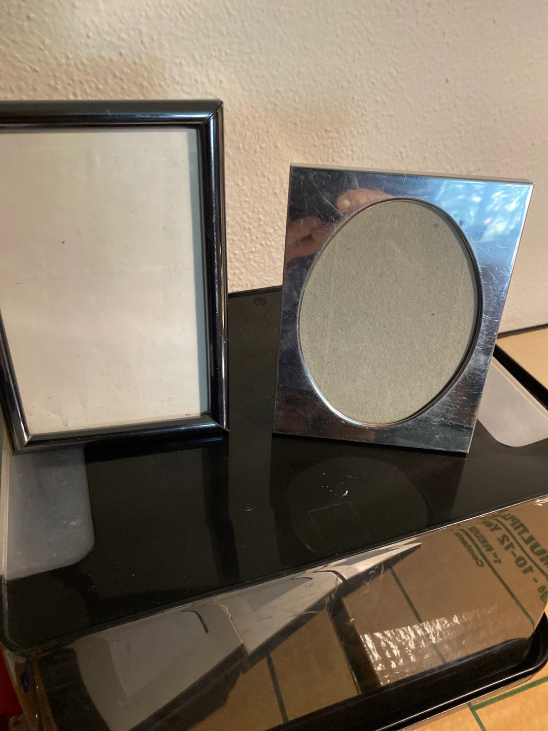 Two picture frames, one black rectangular (4x6”)….and one silver oval (3x5”) They're in good condition and ready to display your favourite photos! Moving Sale Pick up only