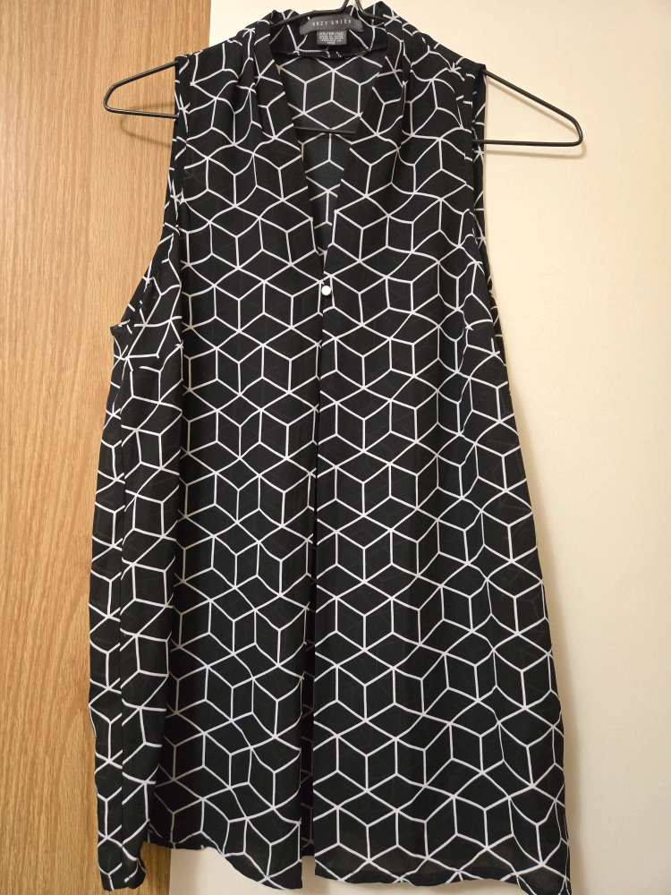 Selling a cute Suzy Shier top in size XS. It features a black and white geometric pattern. Perfect for a night out or a casual day!
