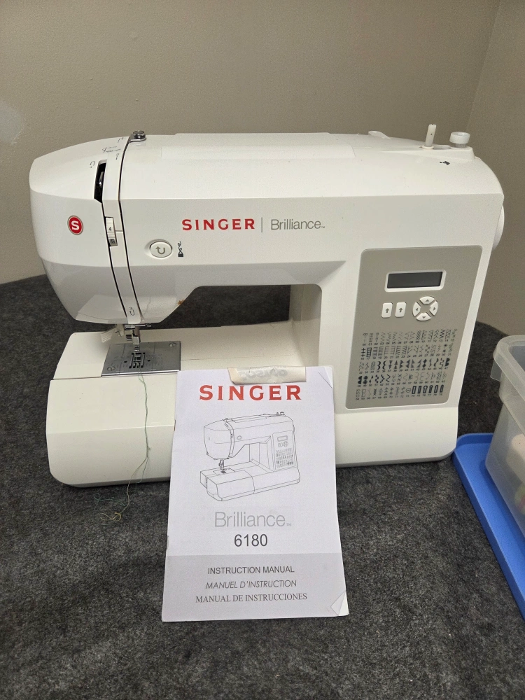 Selling a Singer Brilliance 6180 sewing machine. It's in great shape and ready for your next sewing project! Comes with a variety of accessories in a storage container and the instruction manual