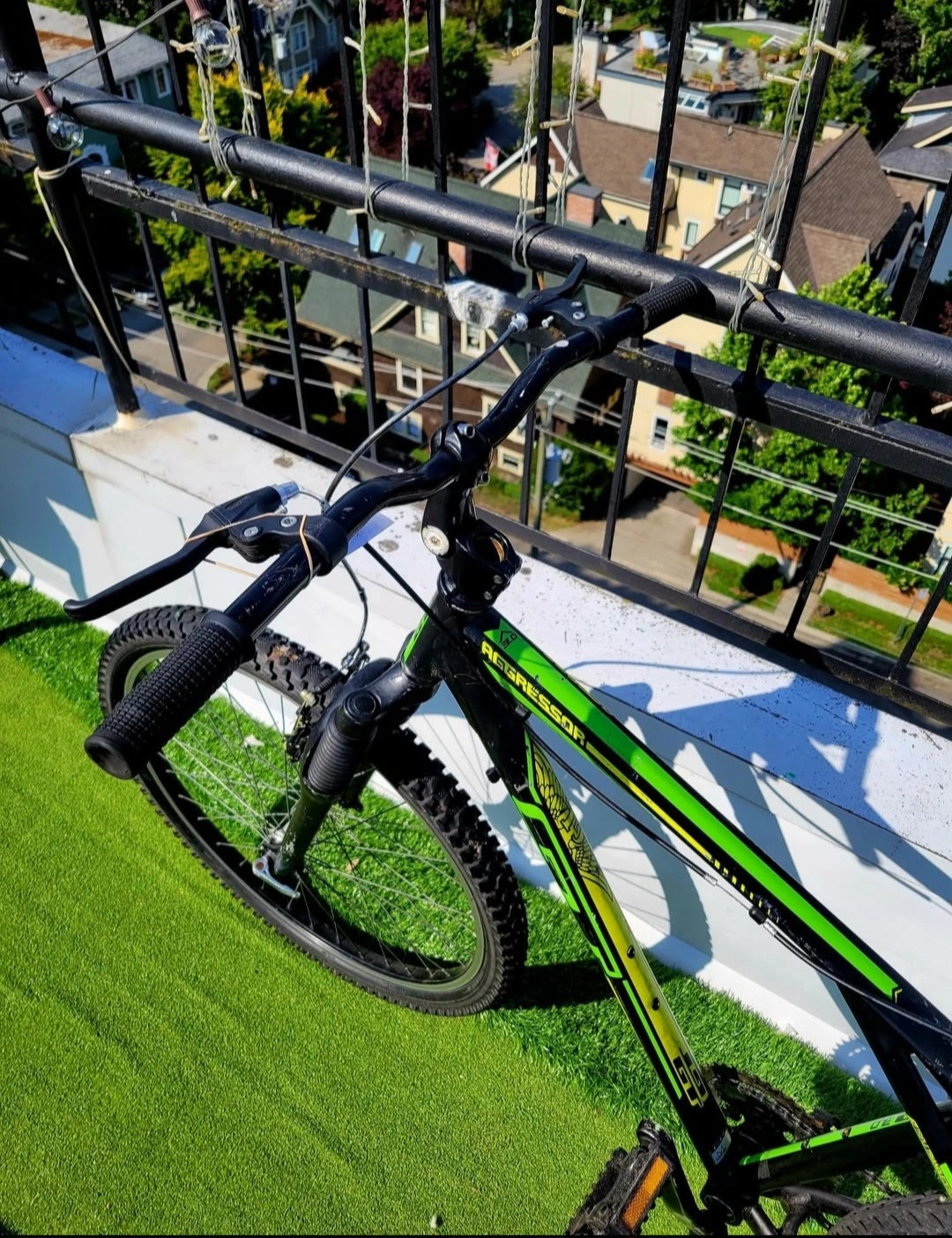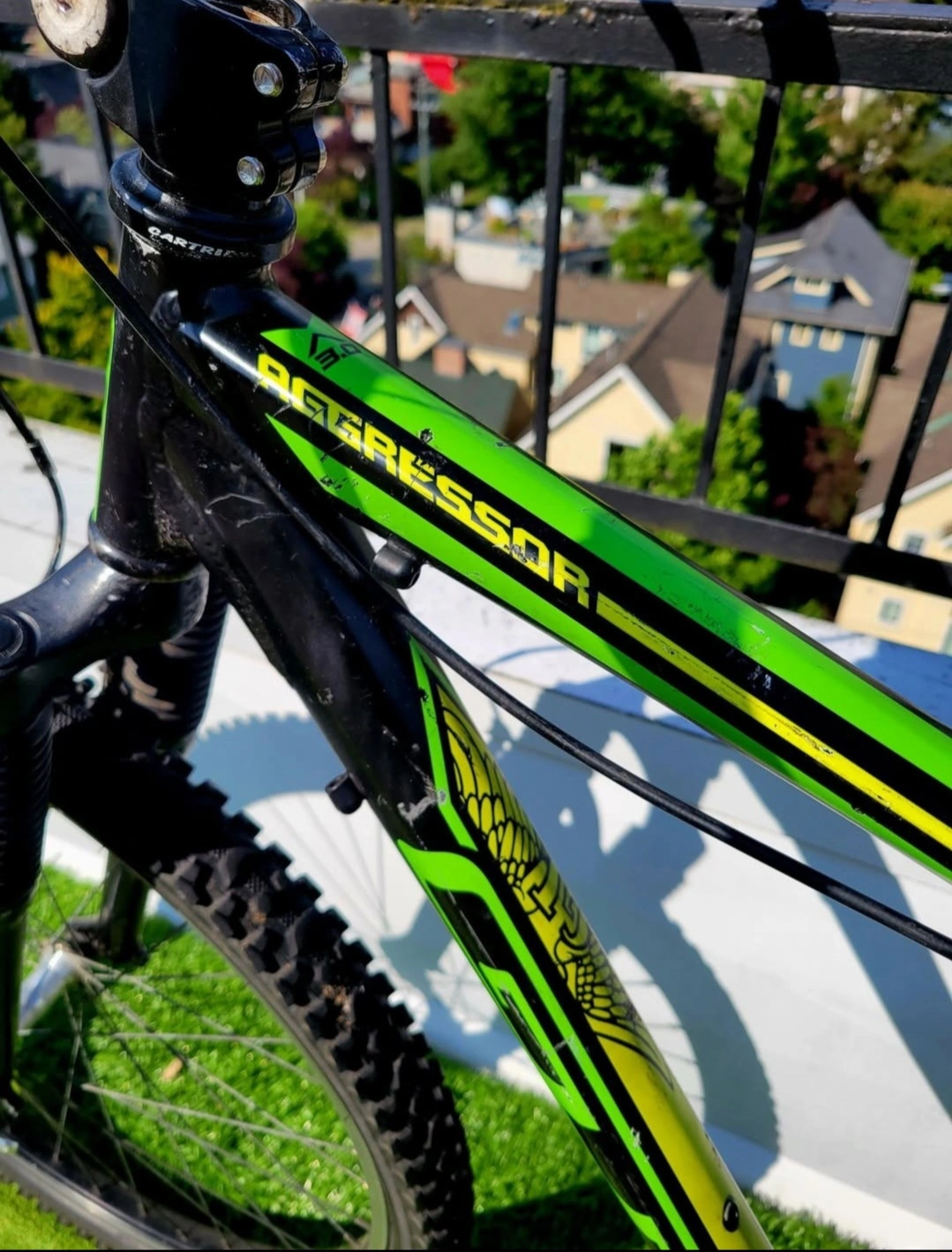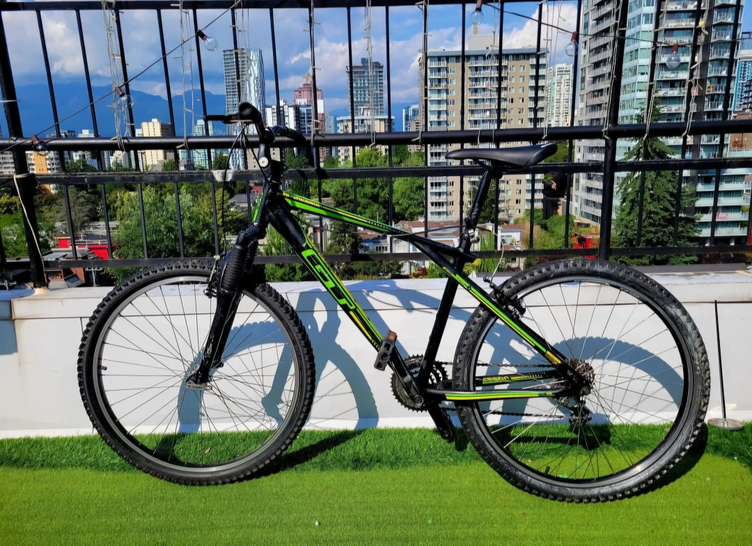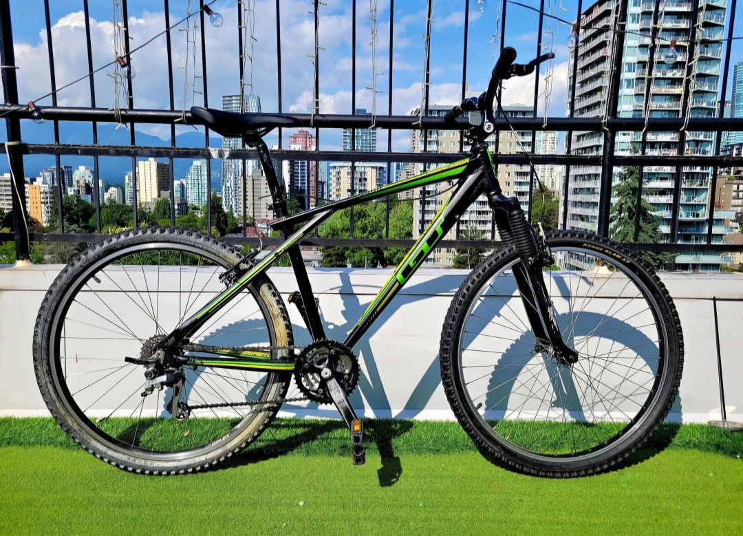 GT Aggressor 3.0 Hybrid bicycle in medium size - ideal for 5'8 - 6'1 riders. Will require new gear shifters since currently they are absent. Shows notable amount of wear but the tires hold air and is currently rideable just unable to shift gears. Pick up in the west end. Tags: bike bicycle Hybrid shox hydraulic mountain road city aluminum GT giant Norco Cannondale Bianchi trek Raleigh rocky Mountain westendtrends vanvaluevintage
