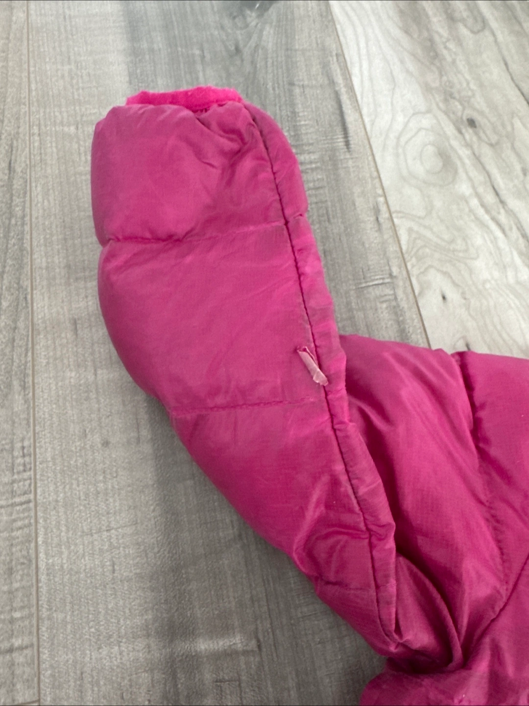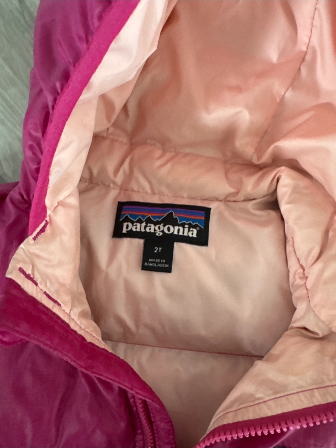 This is a super cute Patagonia down puffer jacket for toddlers! It's a size 2T and perfect for keeping your little one warm during the colder months. It's in great condition and ready for a new home! Note there was a small tear on the right sleeve that’s been patched once. It needs to be rematched but is free if you bring into the Patagonia store.