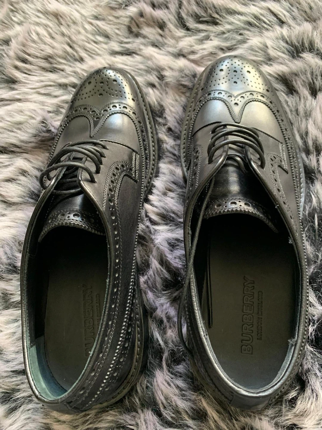 These Burberry dress shoes are a classic and stylish addition to any wardrobe! They're made of black leather with a wingtip design and feature a size 43. Made in Italy. Originally over $900 retail. No box included. Serious buyers only. Price is firm.
