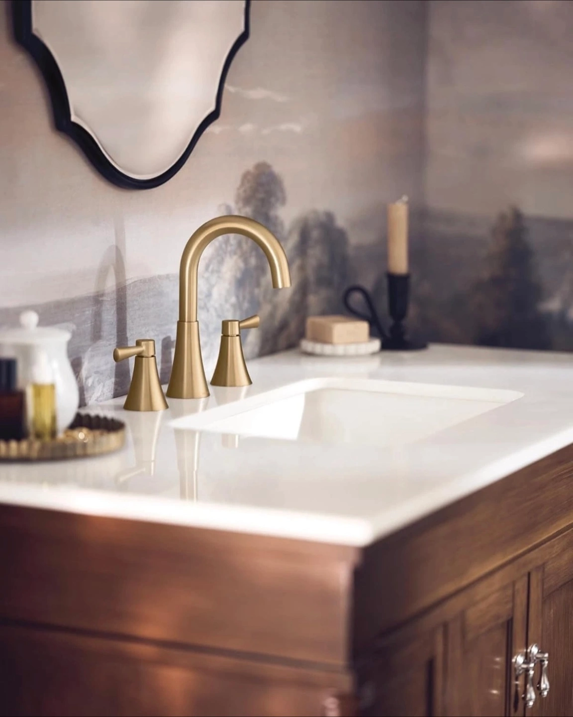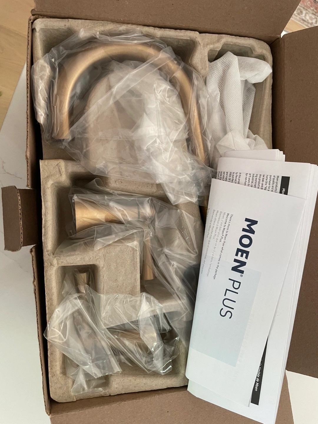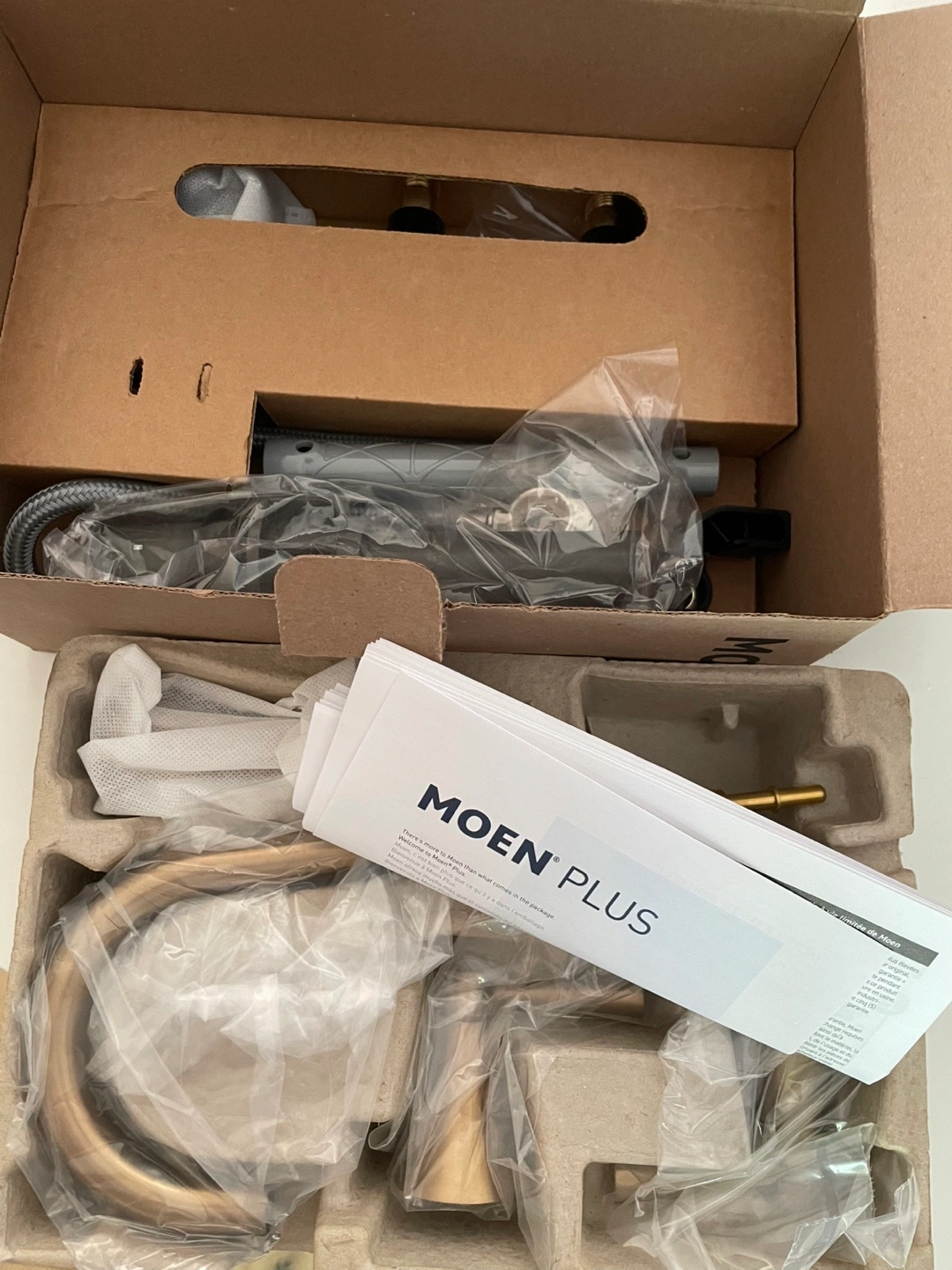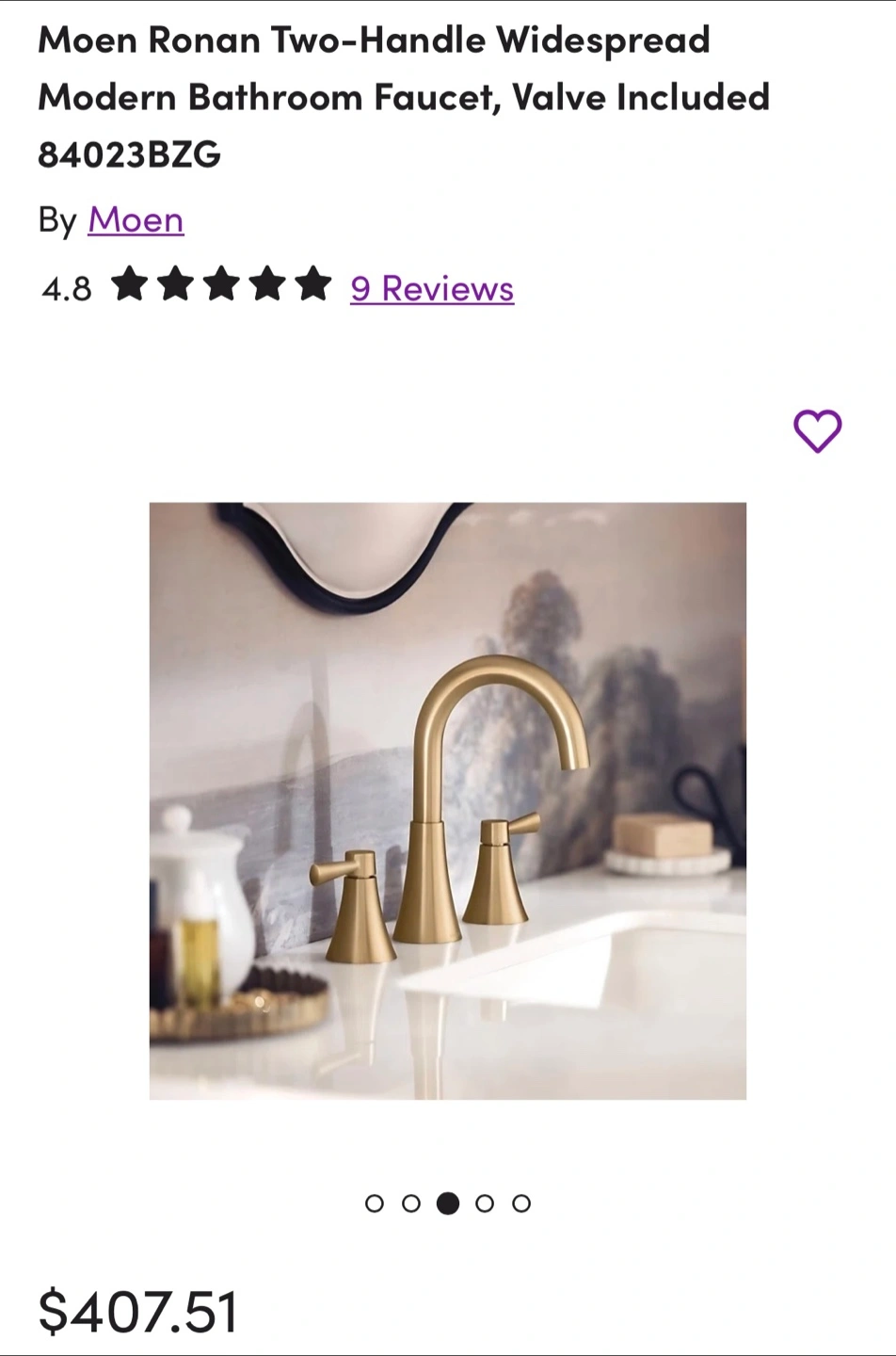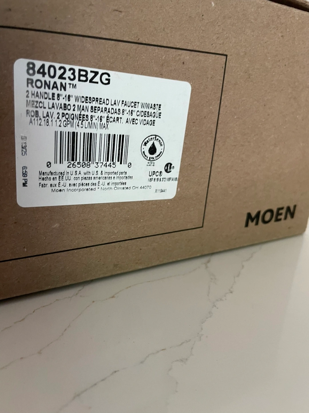 MOEN 84023BZG Ronan Widespread Bathroom Faucet w Valve & Drain, Bronzed Gold. New in Box. $175