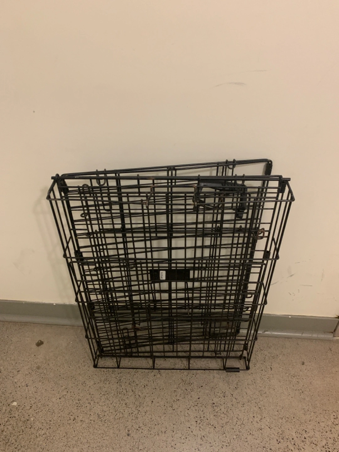 Small foldable pet crate (the plastic floor and one small wire with little hook to close the door is missing( I think it looks like tent peg) otherwise perfect for small dogs to feel safe and “home”