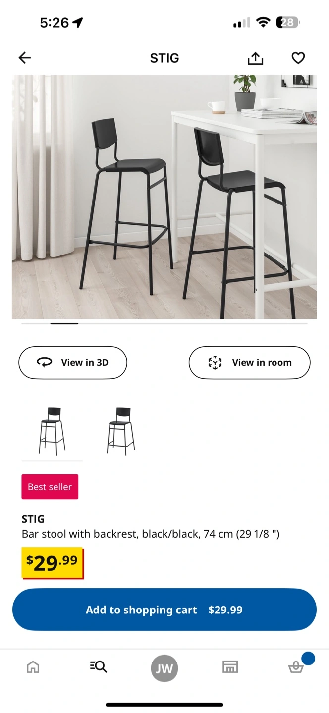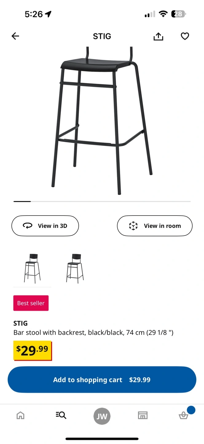 Looking to sell a Stig bar stool from IKEA in black/black. It's in great shape and ready for a new home! The height is 74 cm (29 1/8 "). Originally bought for $29.99 plus tax Only used for 3 month. New place has no island.