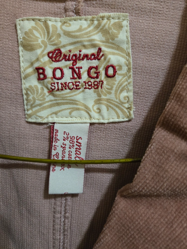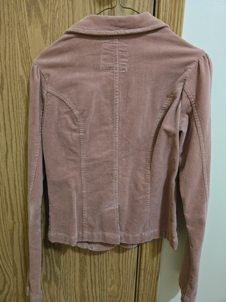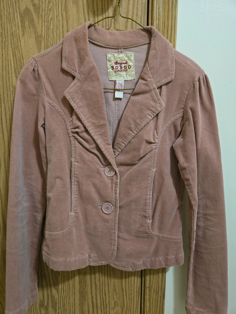 Here's a cute Bongo Original corduroy blazer in a size small! It's a lovely light pink colour and made of 98% cotton and 2% spandex. Perfect for adding a touch of vintage charm to your wardrobe!