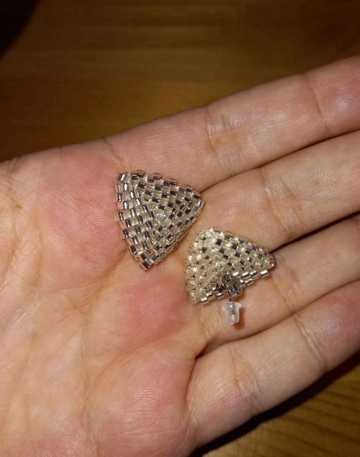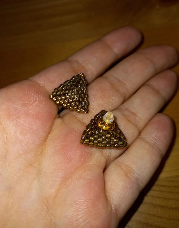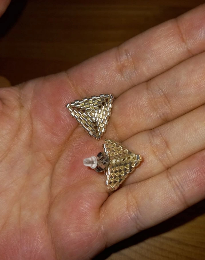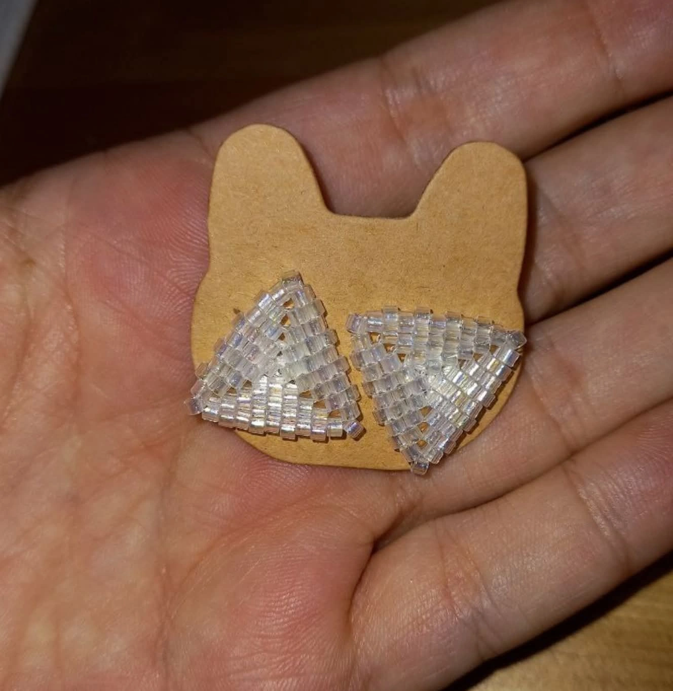 Selling these cute handmade beaded triangle stud earrings! They're in great condition and ready to add a little sparkle to your day Elevate your everyday style with these miniature, double-sided triangle earrings, meticulously handwoven from seed beads and finished with hypoallergenic stainless steel studs for all-day comfort and shine. 🎨 Available in 4 elegant colors: • Light Silver – 2 cm (0.79 in) • Silver – 1.5 cm (0.59 in) • Transparent Shiny White – 1.5 cm (0.59 in) • Bronze – 1.5 cm (0.59 in) 🧵 Crafted using the peyote stitch technique 🔩 Stainless steel posts – perfect for sensitive ears 🌟 Lightweight, modern, and easy to style 🎁 Makes a thoughtful handmade gift 📍 Made in Airdrie, Alberta 🇨🇦 Any color is possible) 💲 Only $25 CAD per pair 📬 Shipping across Canada | Free local pickup in Airdrie