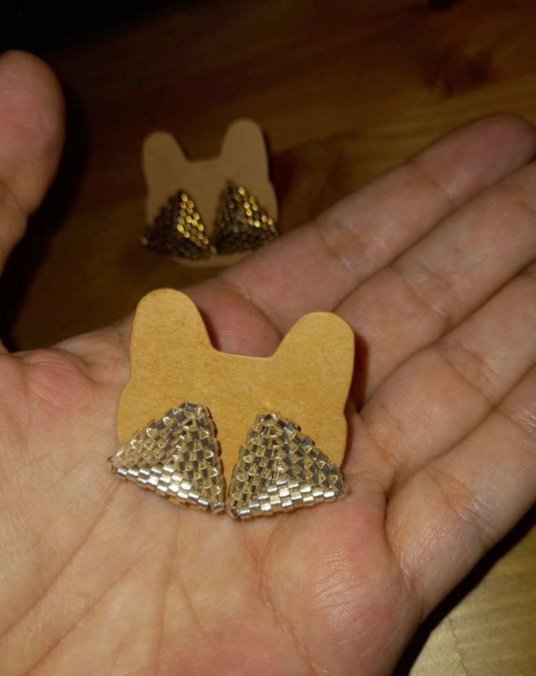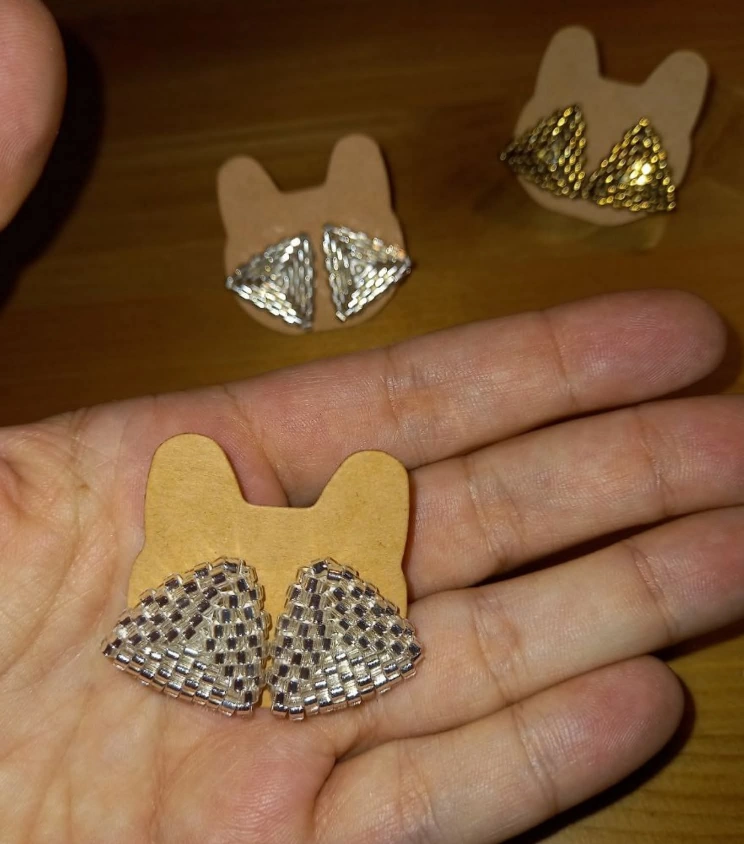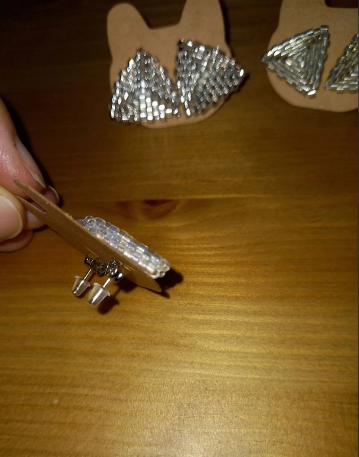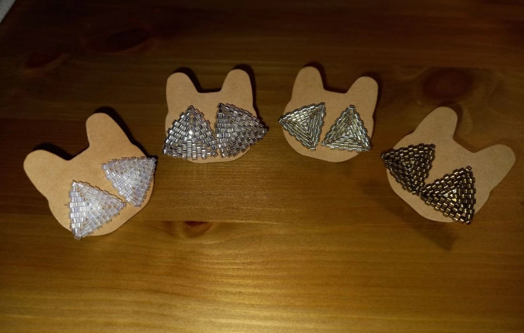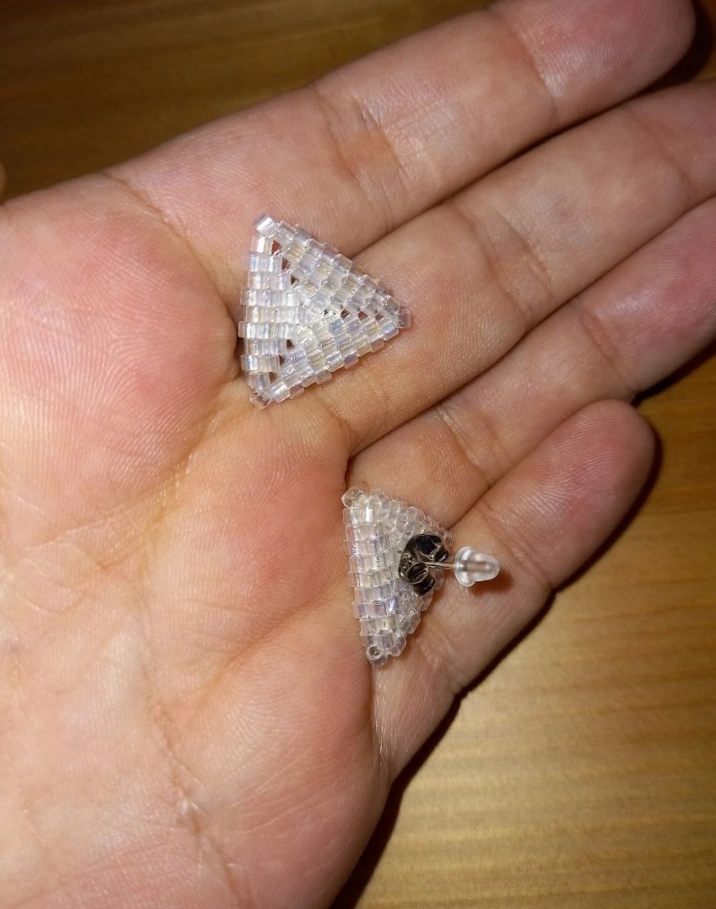 Selling these cute handmade beaded triangle stud earrings! They're in great condition and ready to add a little sparkle to your day Elevate your everyday style with these miniature, double-sided triangle earrings, meticulously handwoven from seed beads and finished with hypoallergenic stainless steel studs for all-day comfort and shine. 🎨 Available in 4 elegant colors: • Light Silver – 2 cm (0.79 in) • Silver – 1.5 cm (0.59 in) • Transparent Shiny White – 1.5 cm (0.59 in) • Bronze – 1.5 cm (0.59 in) 🧵 Crafted using the peyote stitch technique 🔩 Stainless steel posts – perfect for sensitive ears 🌟 Lightweight, modern, and easy to style 🎁 Makes a thoughtful handmade gift 📍 Made in Airdrie, Alberta 🇨🇦 Any color is possible) 💲 Only $25 CAD per pair 📬 Shipping across Canada | Free local pickup in Airdrie