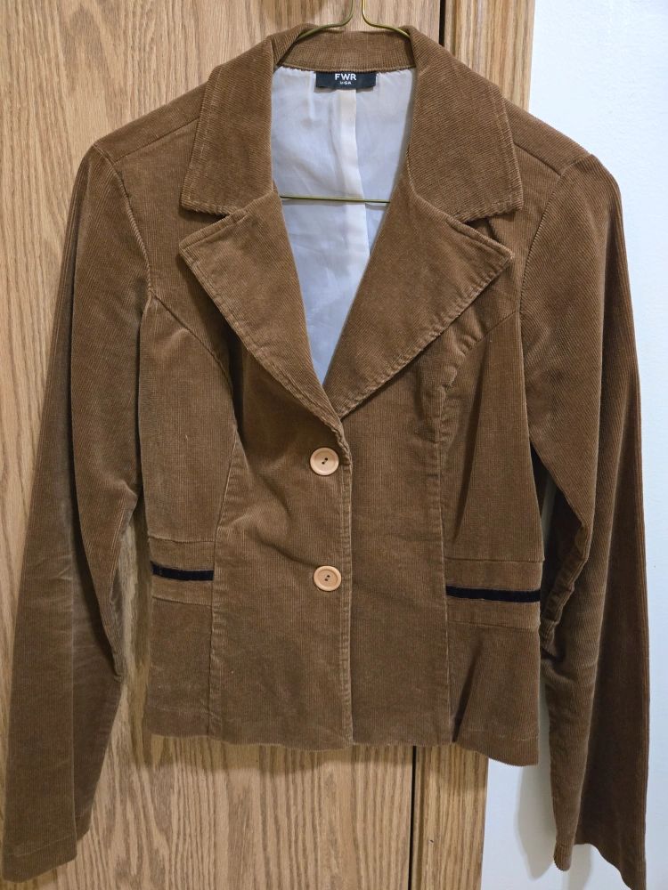 Selling a cute FWR brown corduroy blazer in size small! It's in great condition and perfect for adding a touch of vintage flair to your wardrobe