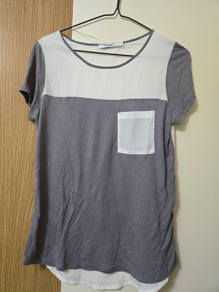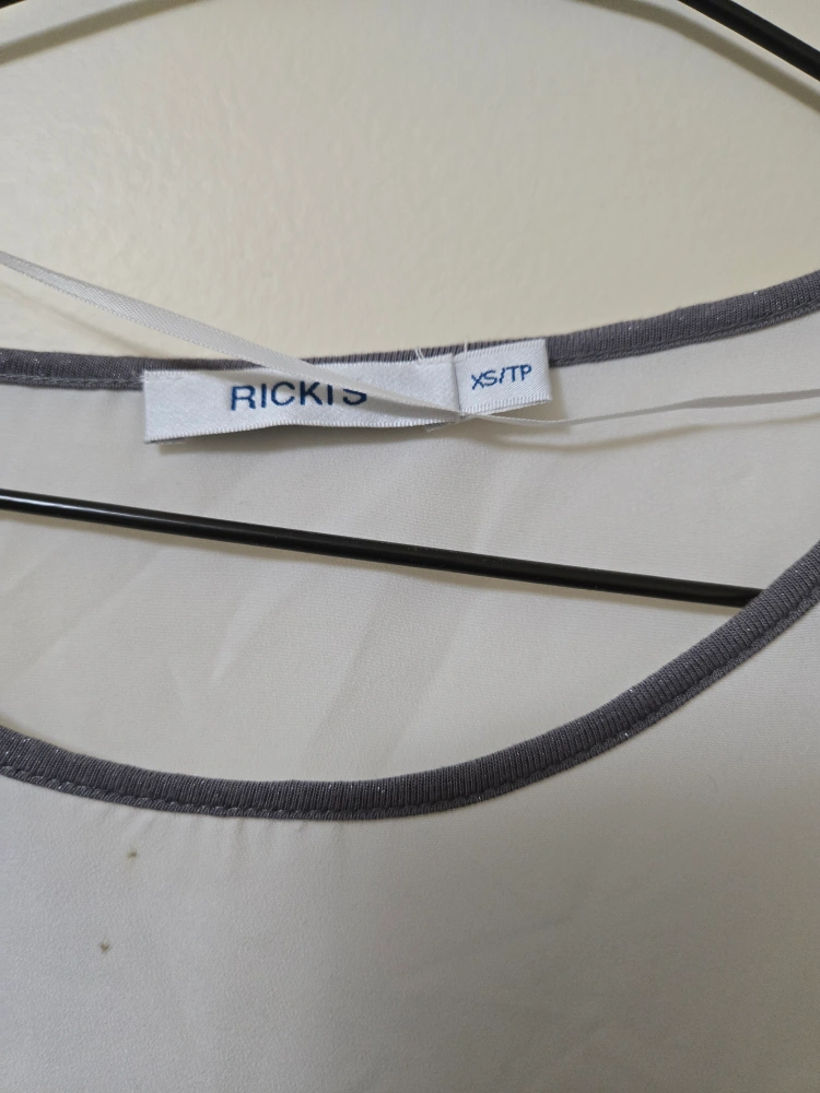 A stylish RICKIS top in good condition! This top features a unique colour block design with grey sleeves and a white chest panel. The size is XS/TP, perfect for petite frames. It also has a cute little pocket on the front!