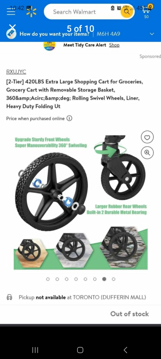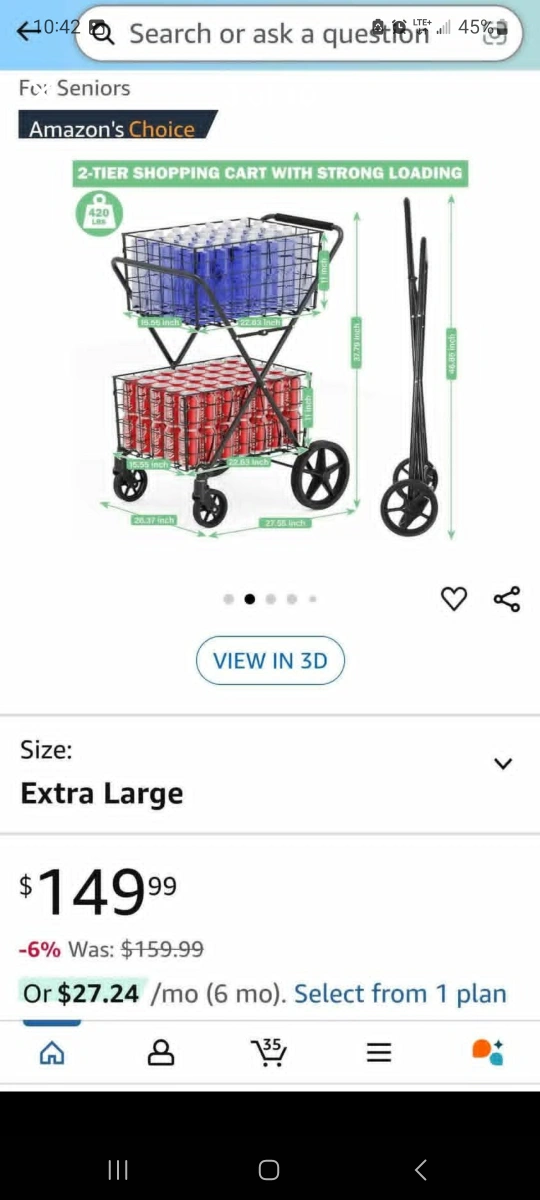 This extra large, two-tier shopping cart is perfect for groceries or laundry! It features a removable storage basket and heavy-duty folding design. The cart has rolling swivel wheels and a liner, making it easy to manoeuvre. It can hold up to 420lbs!