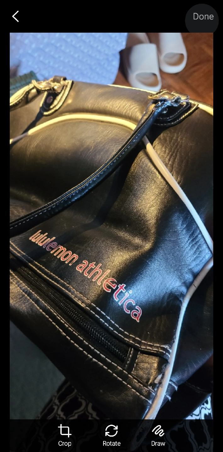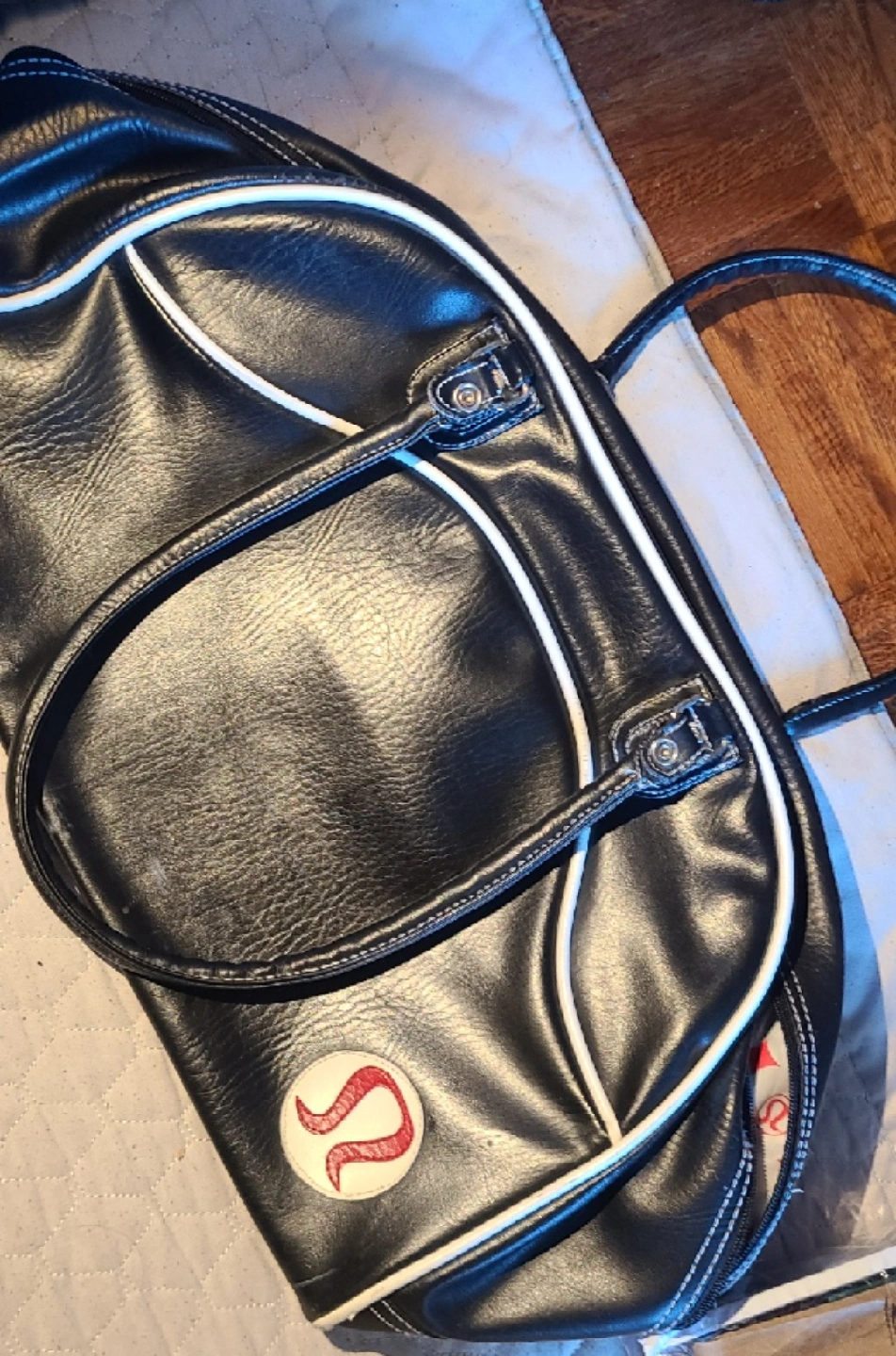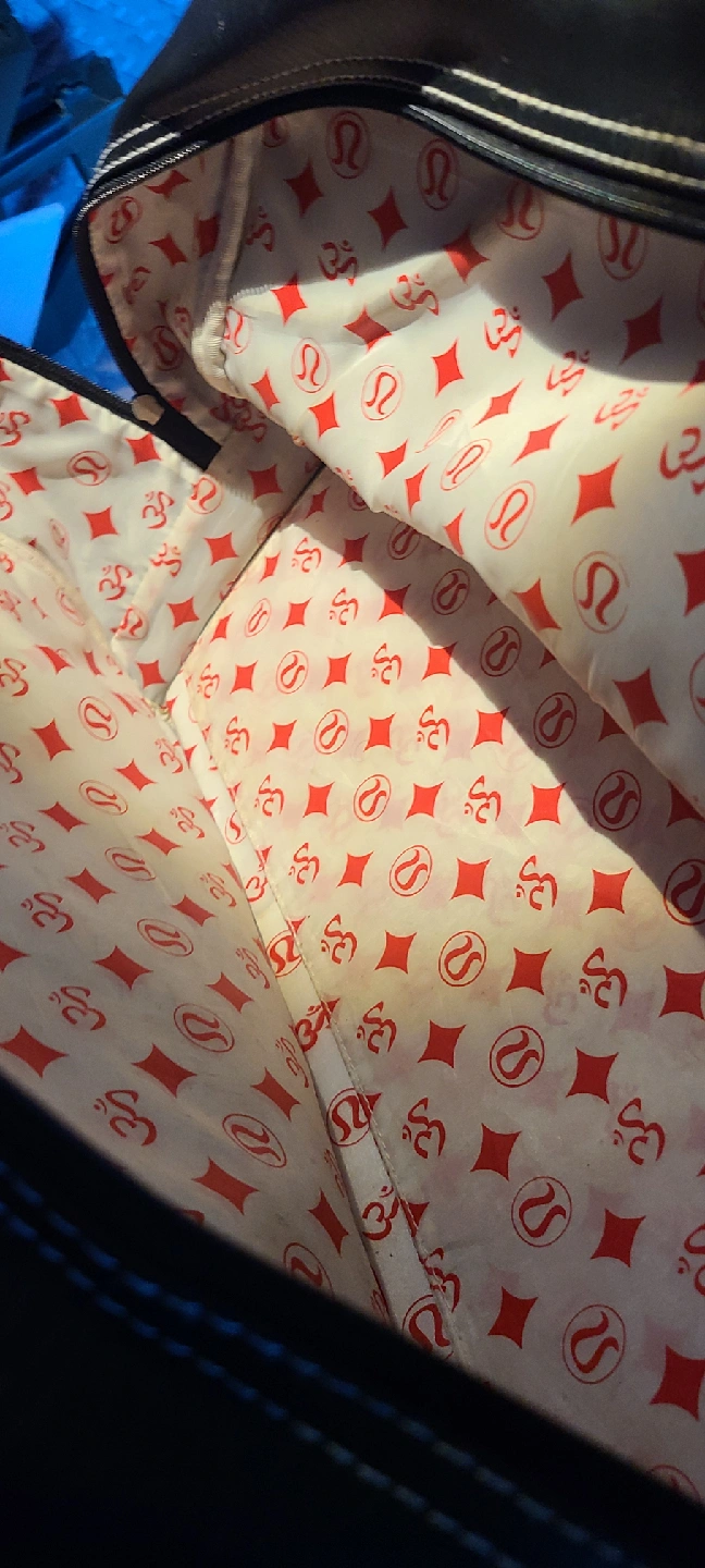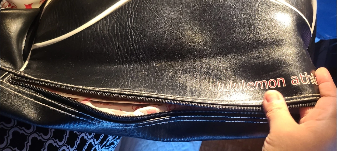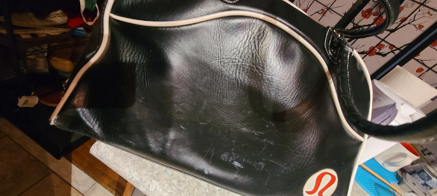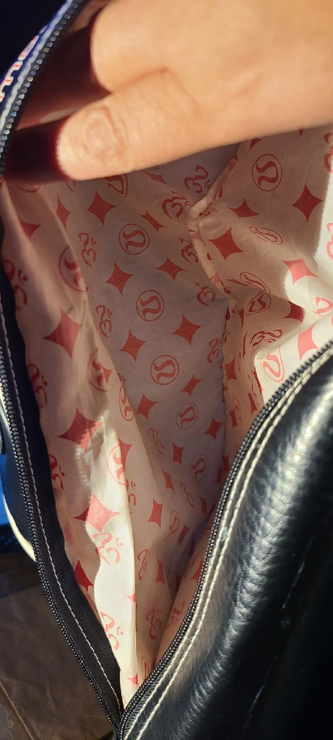 PICK UP BY GERRARD AND RIVER ST ADDRESS GIVEN ONCE MEETUP IS SET Selling a gently used Lululemon Athletica gym bag! It's black leather with white trim and has a fun patterned lining on the inside. Perfect for carrying your workout gear or using as a weekend bag PLEASE SEE ALL PHOTOS