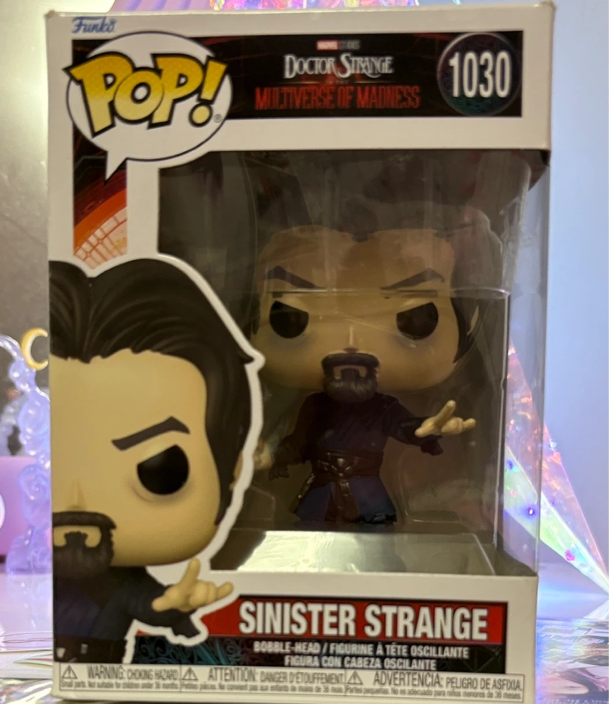 Selling a Funko Pop! figure of Sinister Strange from Doctor Strange Multiverse of Madness. It's number 1030 in the series. The figure is a bobble-head and comes in its original box