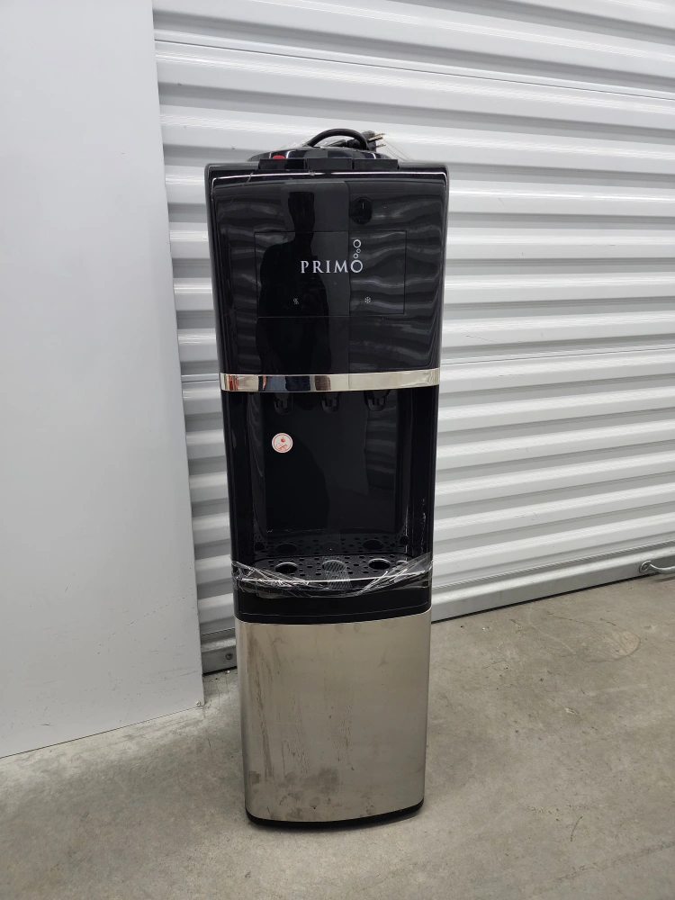 Selling a Primo bottom-loading water dispenser. It's in good condition and ready to use! The dispenser features a sleek design with a black and silver finish. Perfect for home or office use, it makes accessing cold or hot water super convenient