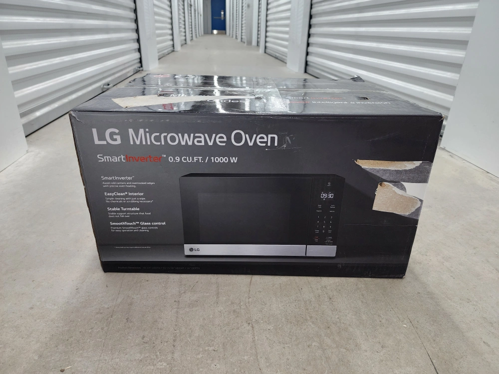 Selling an LG Smart Inverter microwave oven! It's a great size at 0.9 cu ft and has a 1000W power output. It features an EasyClean interior, a stable turntable, and SmoothTouch glass controls. The Smart Inverter technology avoids cold centers and overcooked edges for precise heat distribution