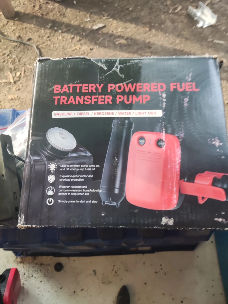 I'm selling a brand new, battery-powered fuel transfer pump. It's still in its original box and has never been used. This pump is designed for transferring gasoline, diesel, kerosene, water, and light oils. It features weather-resistant construction and an auto-stop sensor to prevent overfilling. The LED indicator shows when the pump is in operation, and it's equipped with explosion-proof motor and overload protection