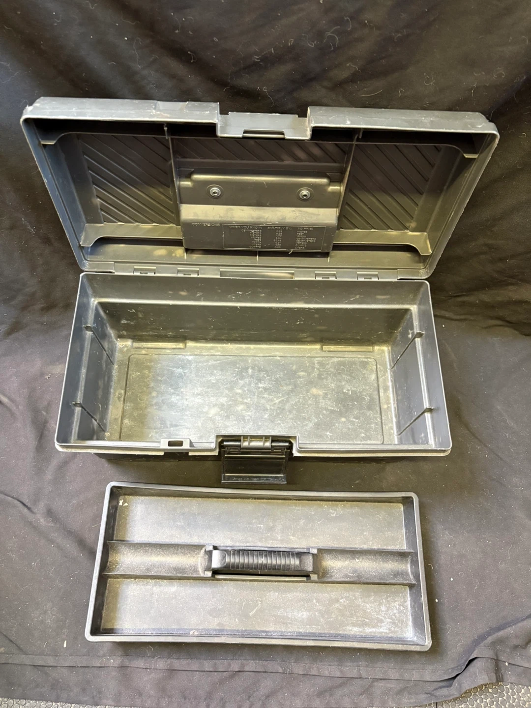Okay condition has inner tray Rubbermaid Tool Box Selling a Rubbermaid tool box. It's in used condition and has a removable tray inside. Perfect for storing your tools and keeping them organized $1 Pick up Victoria Park & O’Connor area