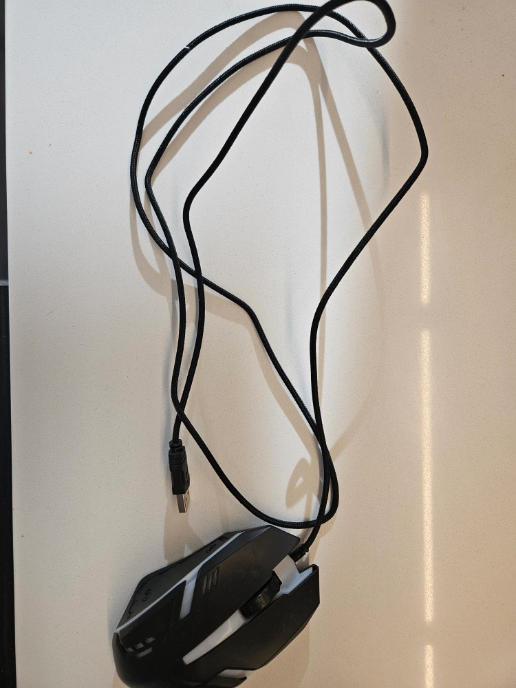 Selling a used mouse. It's black with white accents and has a braided cable. Great for PC gaming!