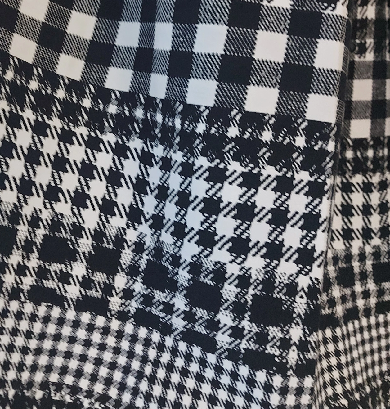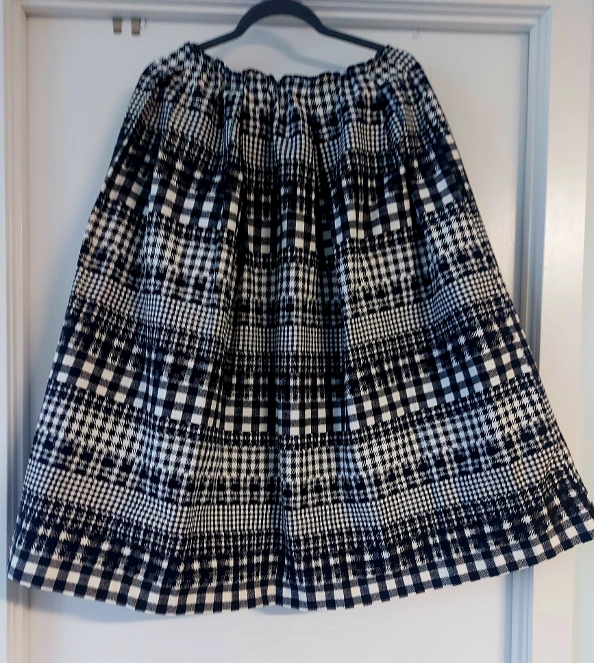 Here's a lovely black and white plaid skirt! It's new and features a unique patchwork design with different plaid patterns. Perfect for adding a touch of style to your wardrobe