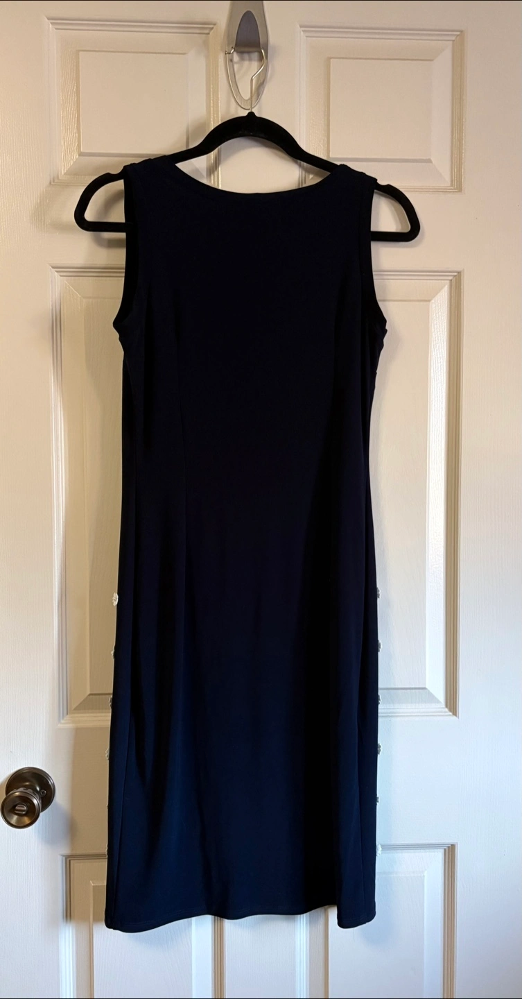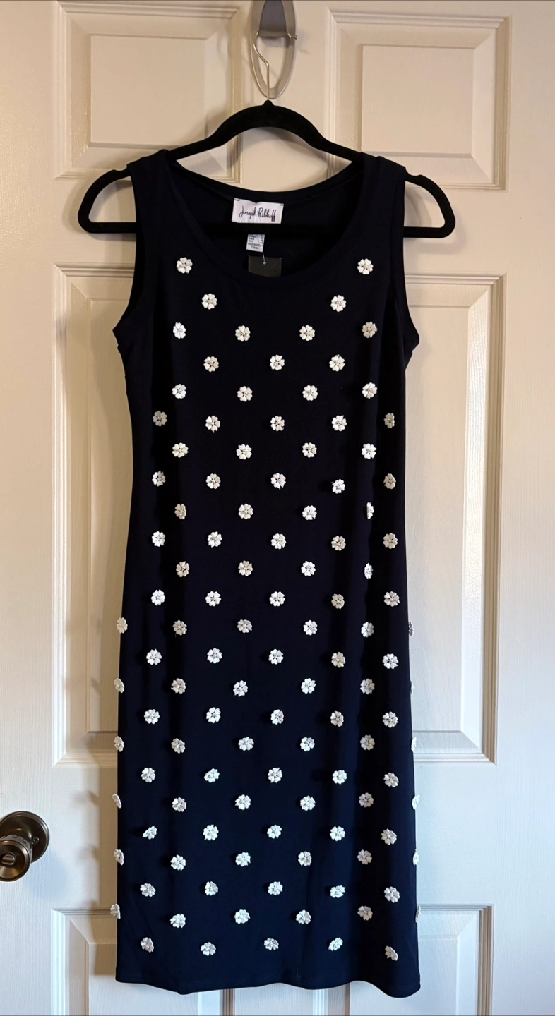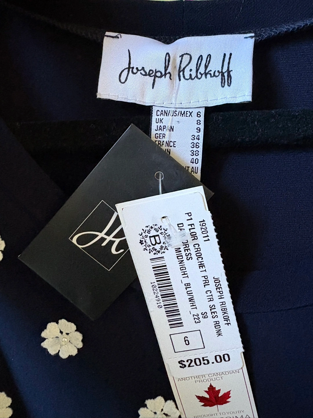 Joseph Ribkoff sleeveless dress Colour midnight blue/white Features crochet daisies and faux pearl beads Regular price $205.00 Size 6 Giftable New with tags, never worn Pit to pit measures - 14.5”, w stretch 18.5” Length measures - 38.5” Canadian luxury designer Cash preferred or etransfer from verified users Porch pick locations: Markham - Markham Rd & 16th Ave Oshawa - Wilson Rd & Adelaide Ave Pls feel free to ask me any questions