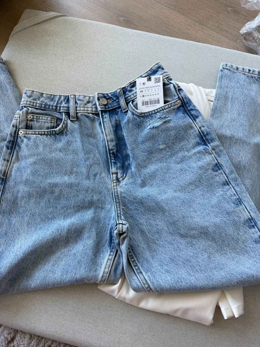 Two great pairs of pants for sale! - Zara Mom Fit Jeans, size 34 - Urban Outfitters Cream-coloured trousers, size S Both new with tag $30 Each DT Queen st pickup only