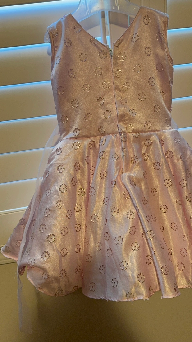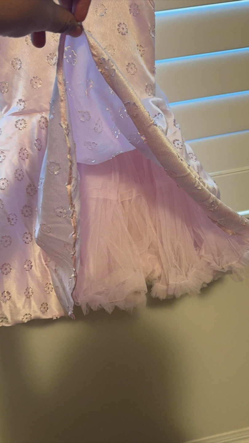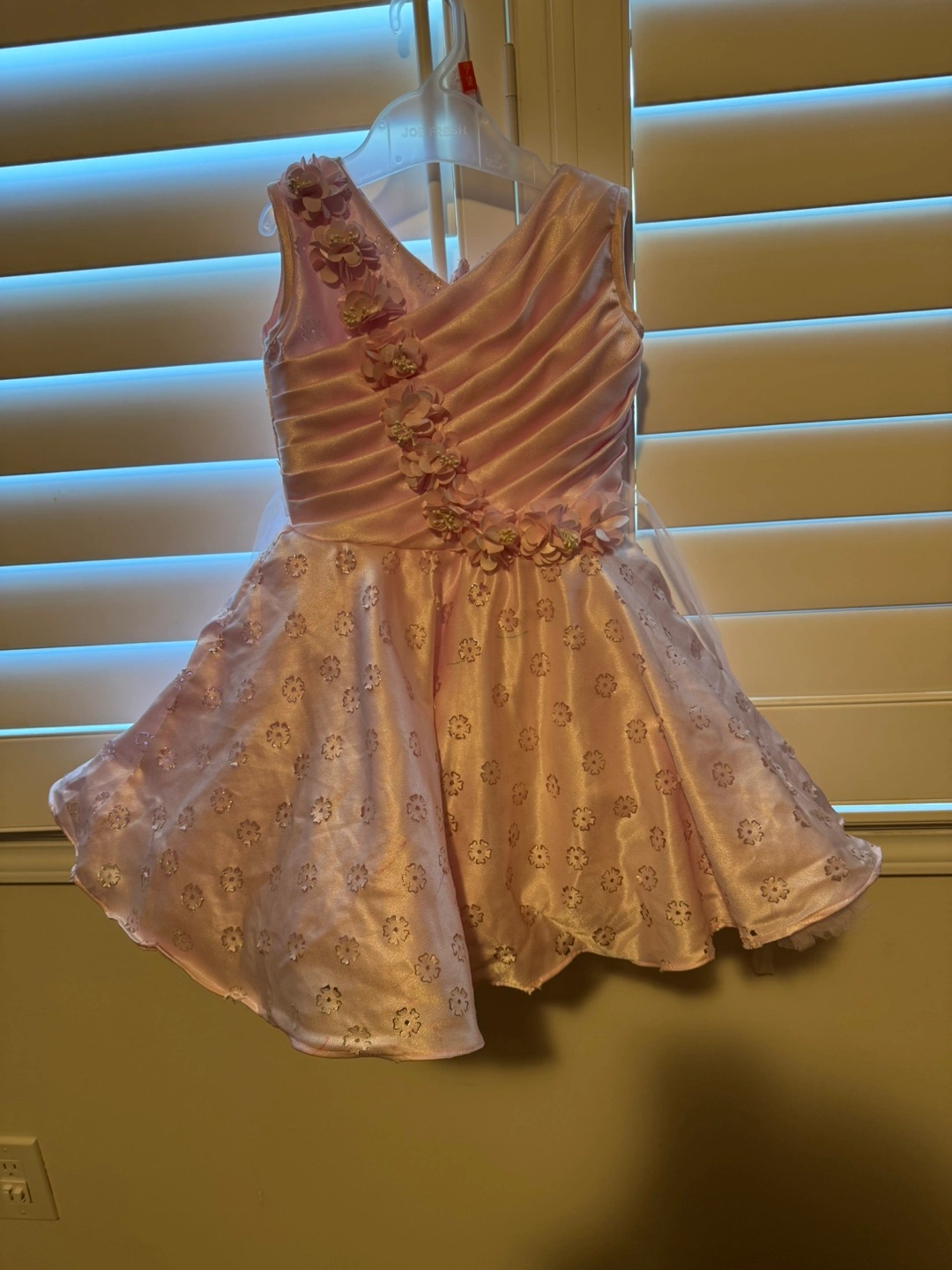 Selling a super cute light pink dress! It features a sweet floral pattern and a layered skirt. Perfect for a special occasion or just feeling fancy!