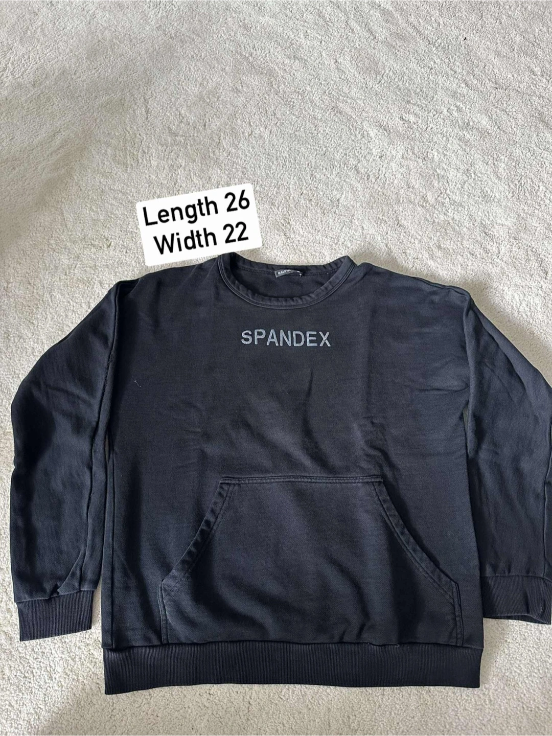 Selling a Balenciaga Spandex sweatshirt in black, size medium. The length is 26 inches and the width is 22 inches. It's in great condition!