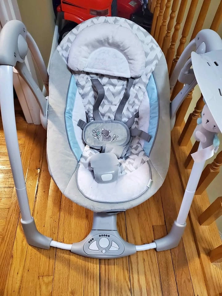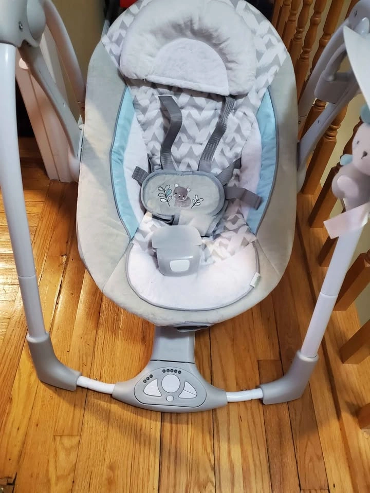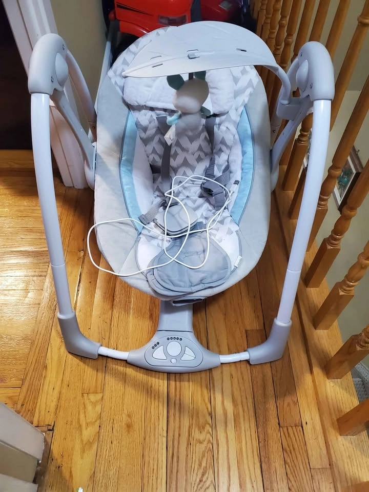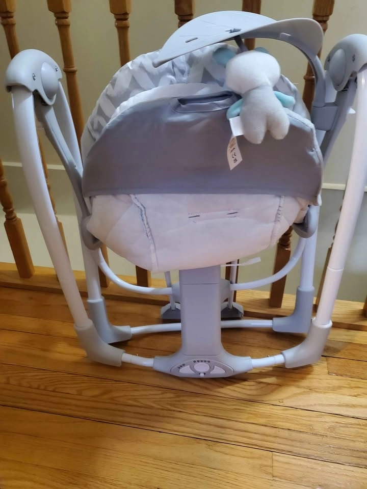 Compact baby swing. USB plug. Sings, rocks, and adjustable.