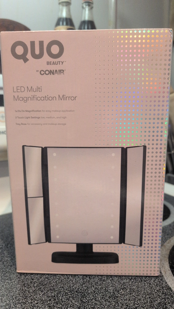 Selling a QUO Beauty LED Multi Magnification Mirror by Conair! It features: - 1x/2x/3x Magnification for easy makeup application - 3 Touch Light Settings: low, medium, and high - Tray Base for accessory and makeup storage. Never been used.