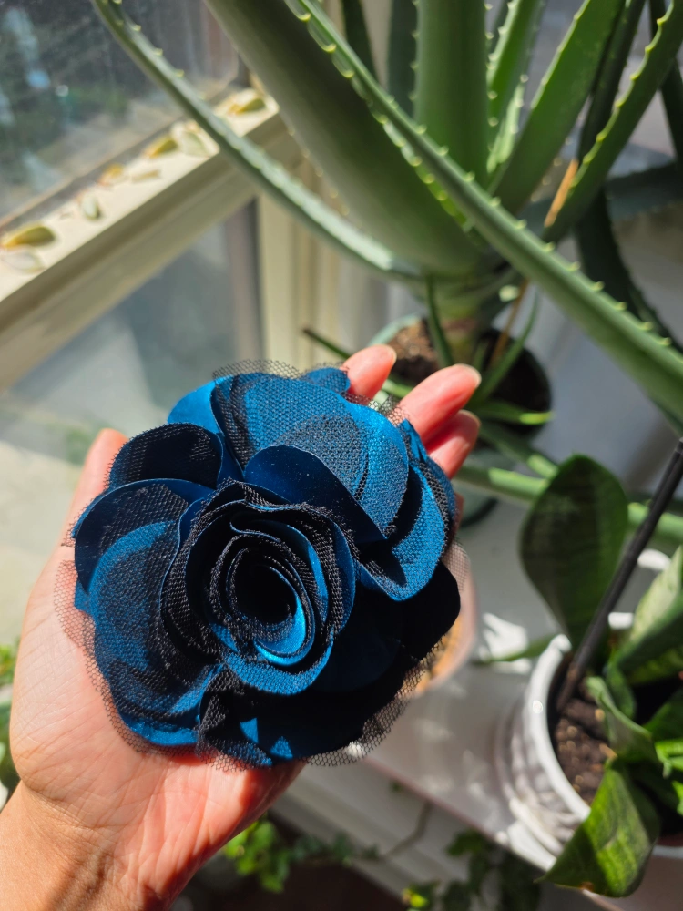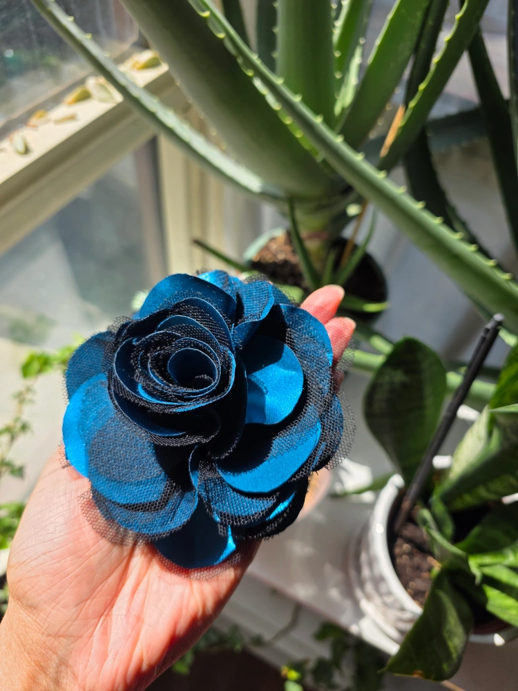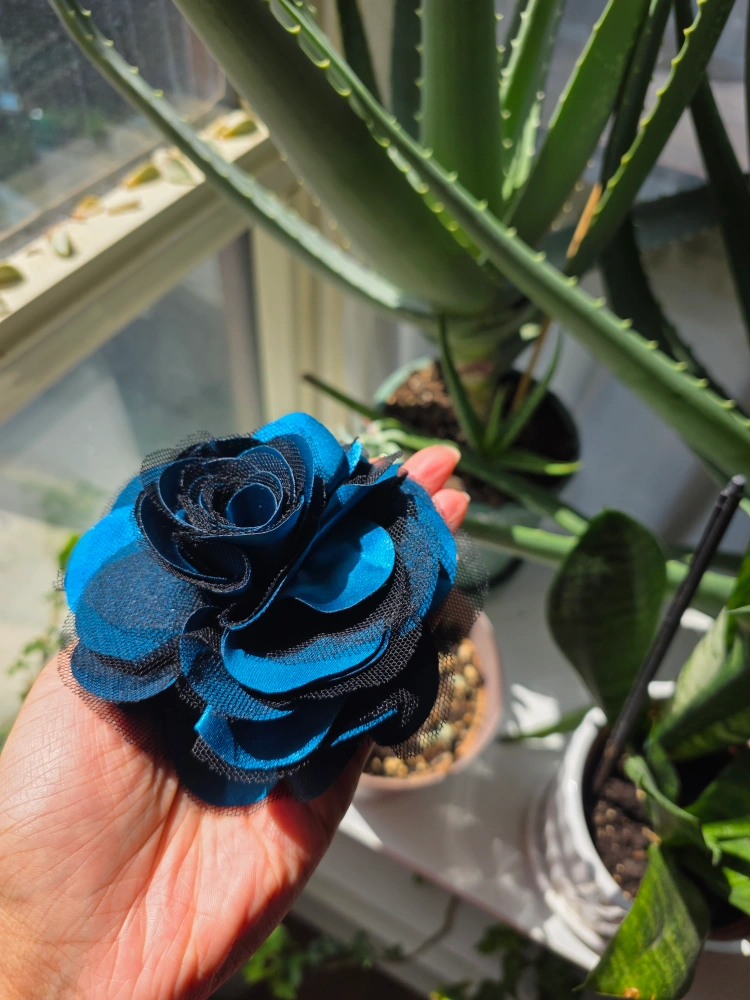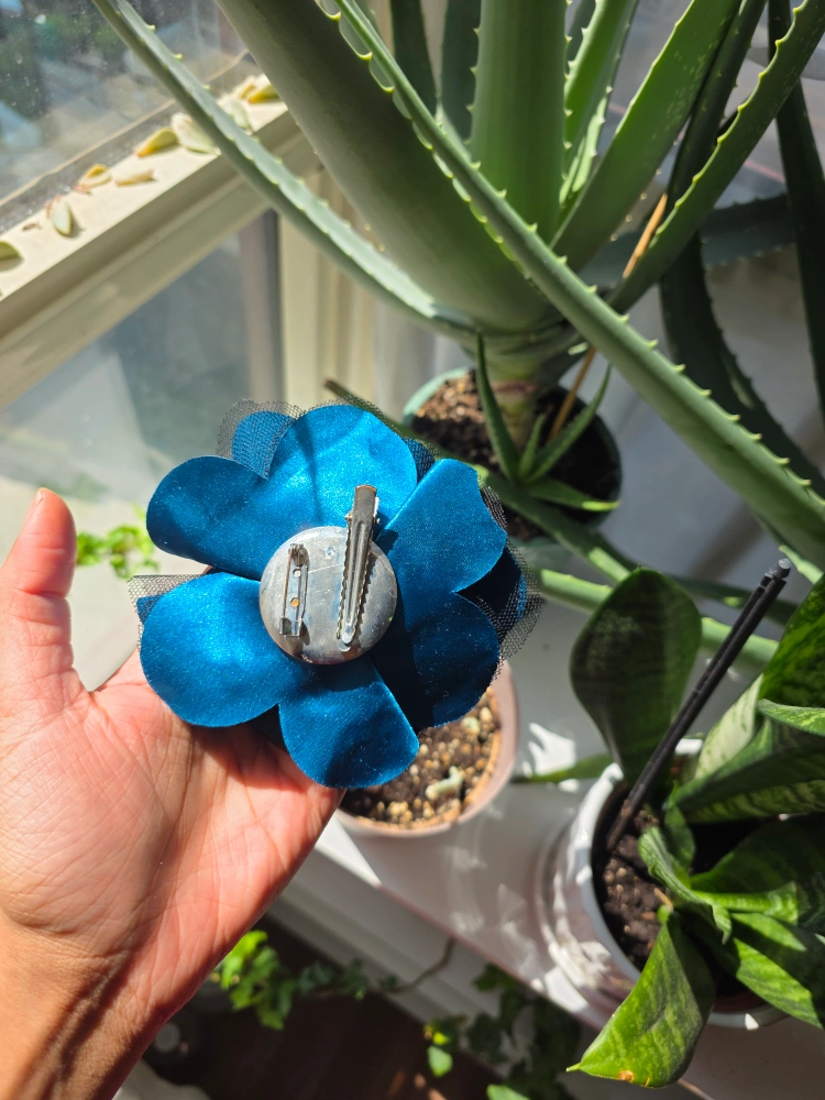 Beautiful teal blue satin and tulle flower brooch / clip 2 in 1. Used once maybe so like new condition.