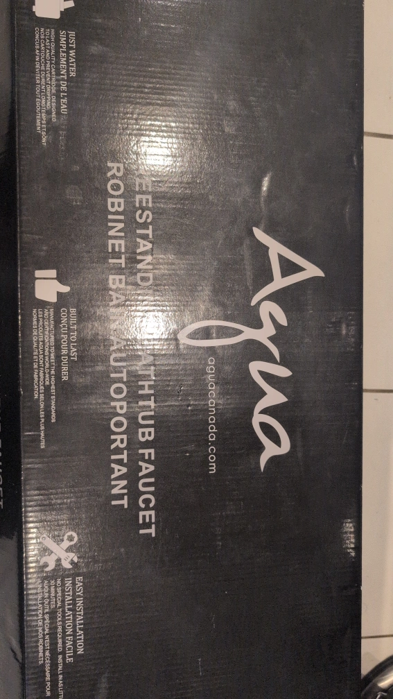 Selling an never been used Aqua Sammie freestanding bathtub faucet in chrome finish. It is a robinet bain autoportant. The box indicates easy installation with no special tools required, estimating about 30 minutes. Perfect for upgrading your bathroom!