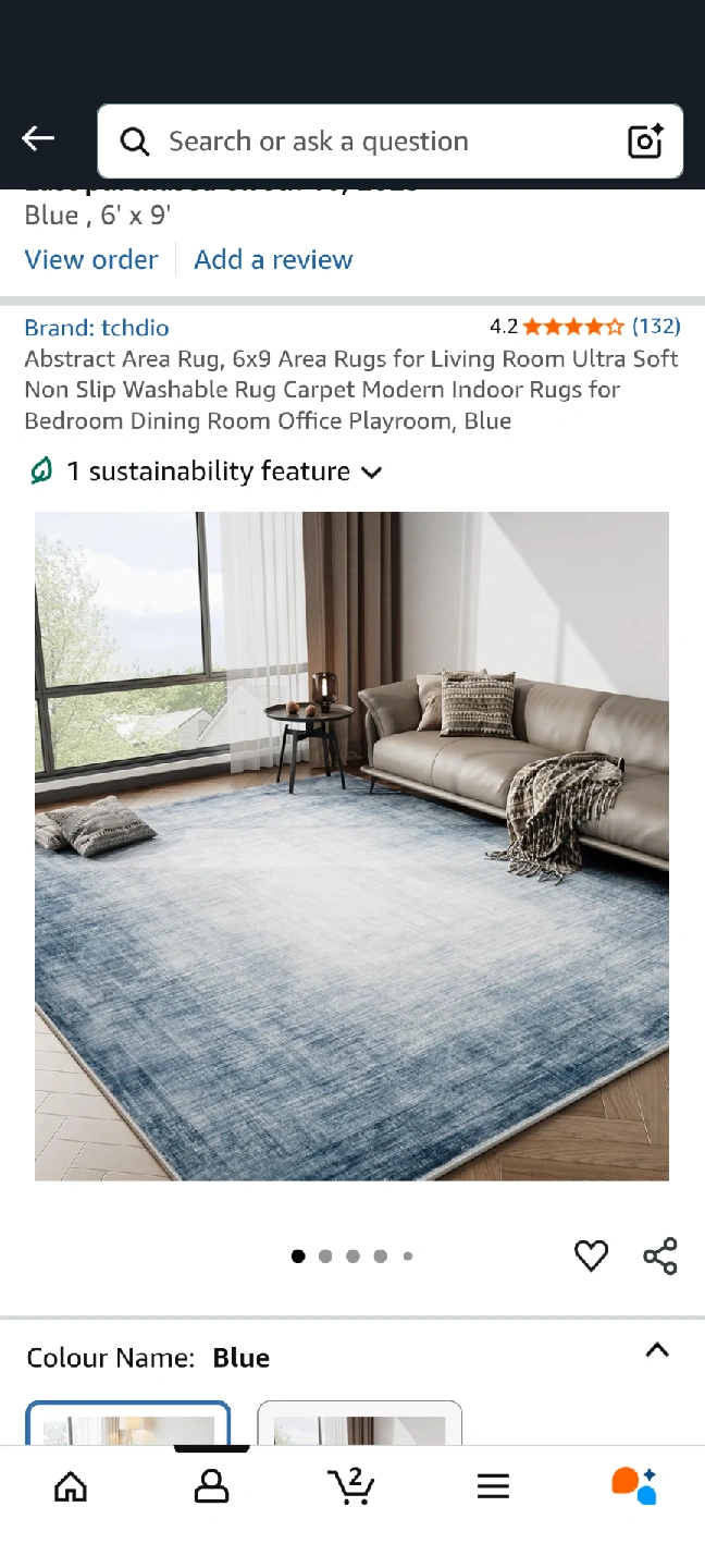 Looking to add a touch of modern comfort to your space? This Tchdio abstract area rug is perfect for living rooms, bedrooms, dining rooms, offices, or playrooms. It's a beautiful blue colour and measures 6' x 9'. It's ultra-soft and non-slip, making it a great choice for any home Used for couple weeks Washable