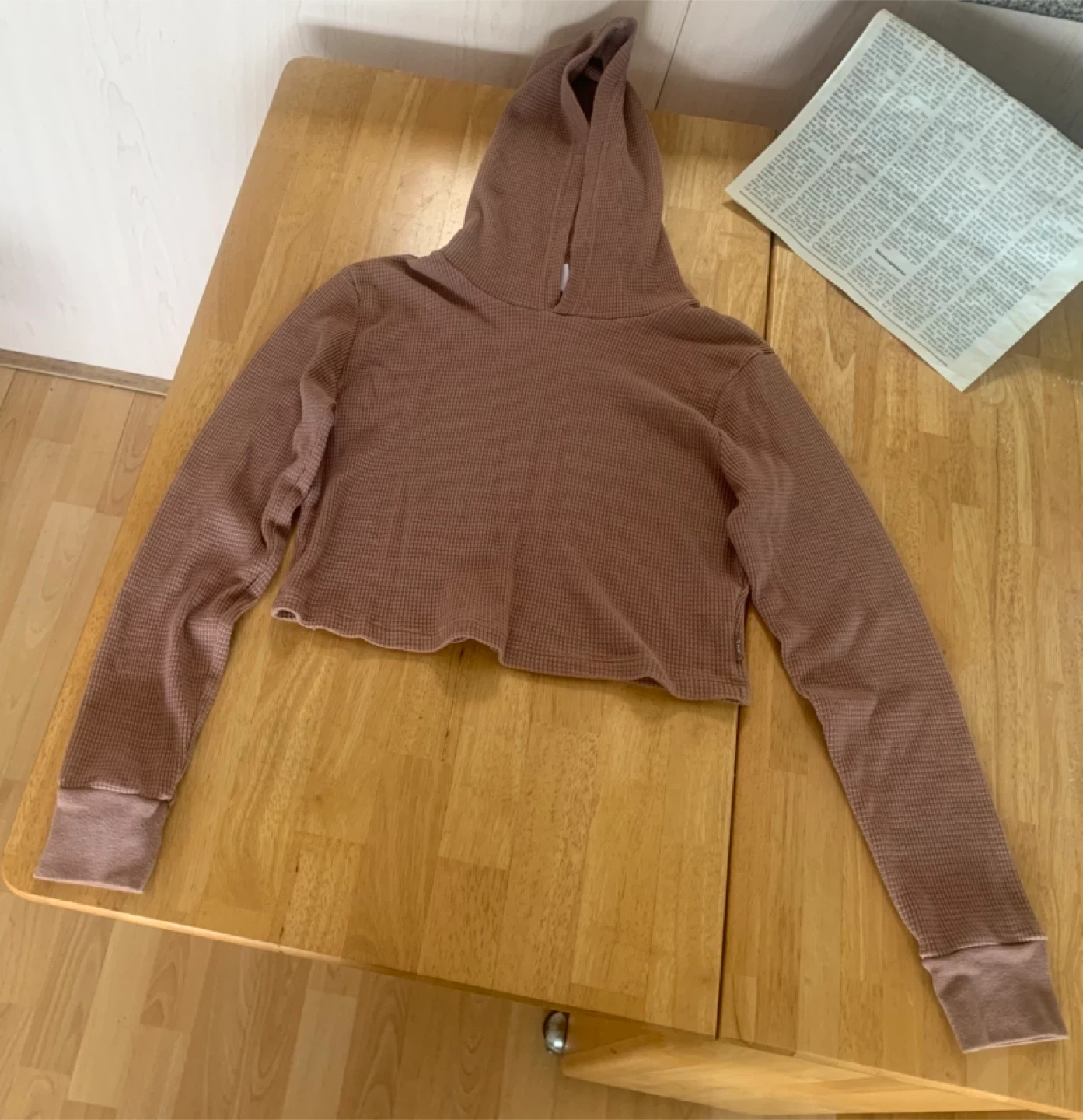Selling a TNA waffle knit cropped hoodie in size large. It's a comfy and stylish piece, perfect for layering or wearing on its own. The waffle knit texture adds a nice touch, and the cropped length is super trendy. This hoodie is in great condition and ready for a new home! ๐ฅ