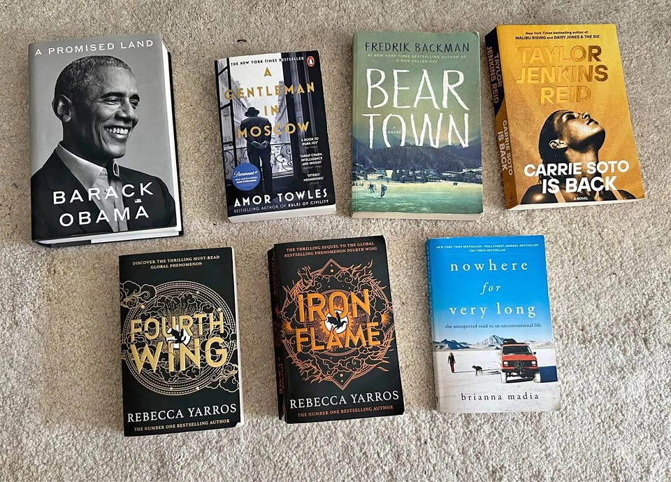 Moving to New Zealand so sadly selling all my books. If they are listed below they are still available ☺️ Carrie Sotto is Back | Taylor Jenkins Reid A Gentleman in Moscow | Amor Towles A Promised Land | Barrack Obama Bear Town | Fredrick Backman Nowhere for Very Long | Brianna Madia $10