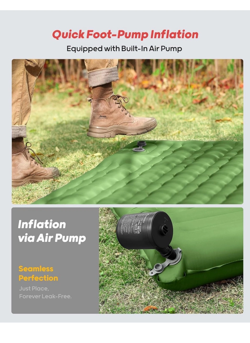 Selling a brand new inflatable camping pad! This pad is lightweight and compact, making it perfect for any camping trip. It's designed to conquer any ground, so you can revel in the beauty of camping. It also features a quick foot-pump inflation system, equipped with a built-in air pump, and a patented I-beam framework for solid support