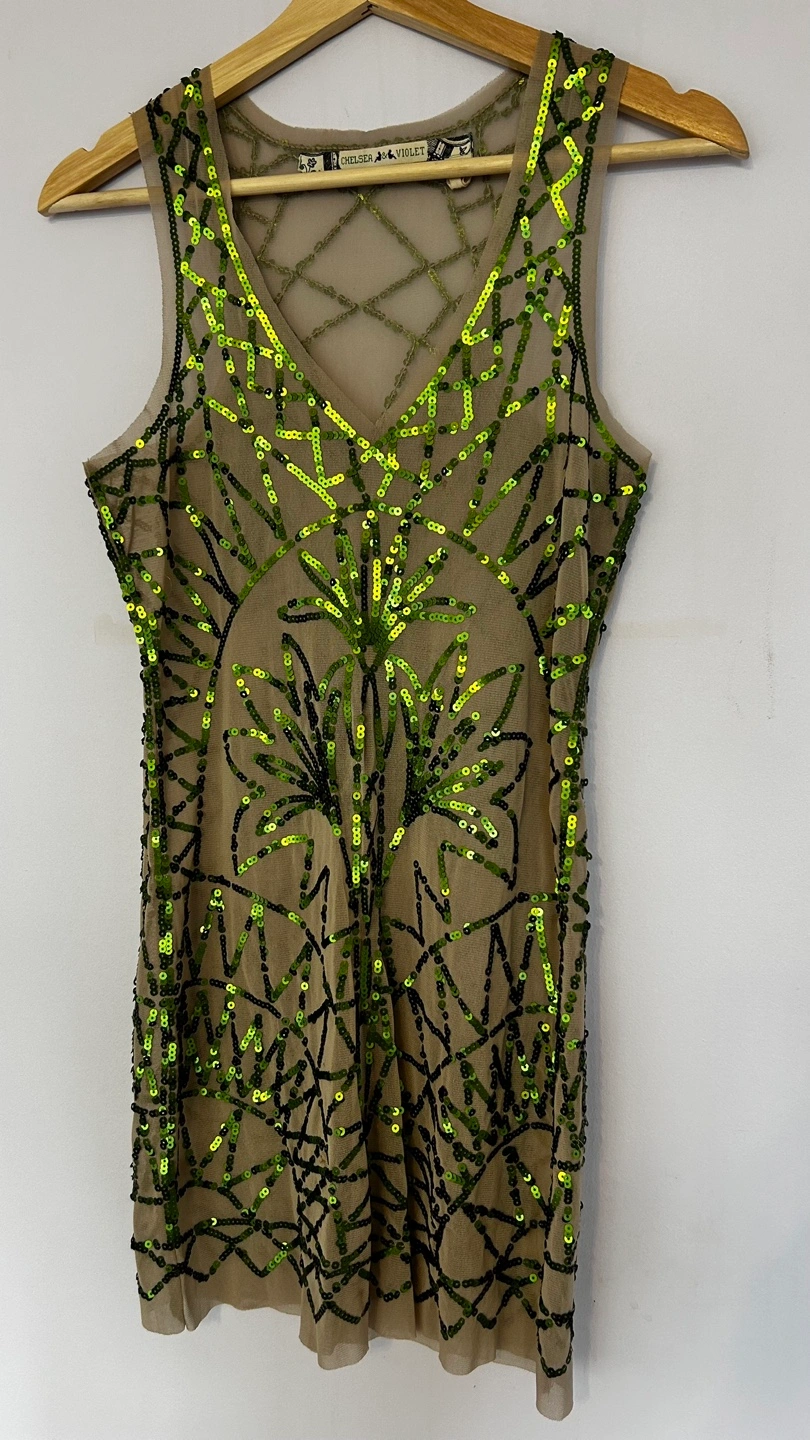 This is a Chelsea & Violet dress in size XS. It features a unique sequin design, perfect for a night out or special occasion!
