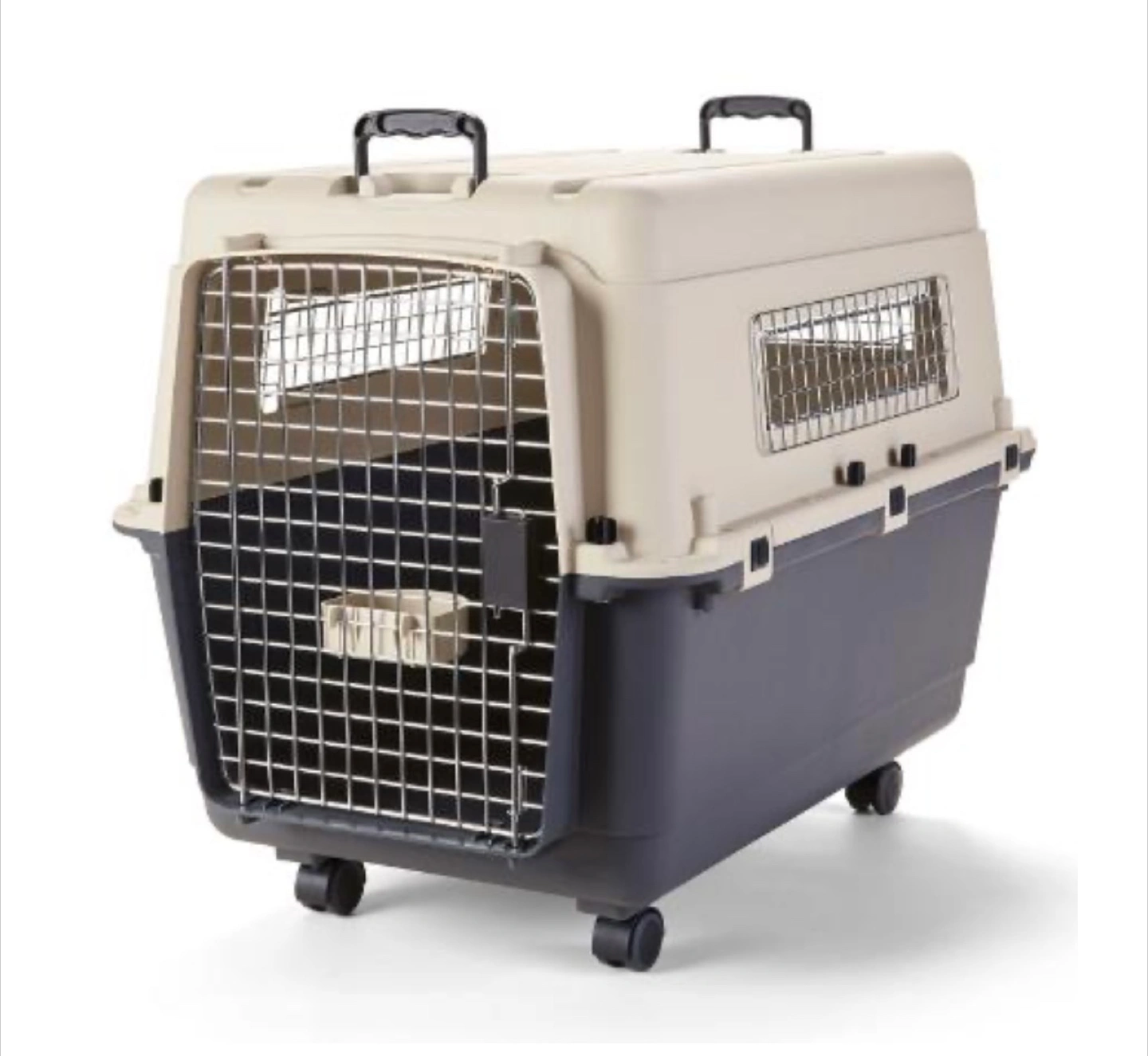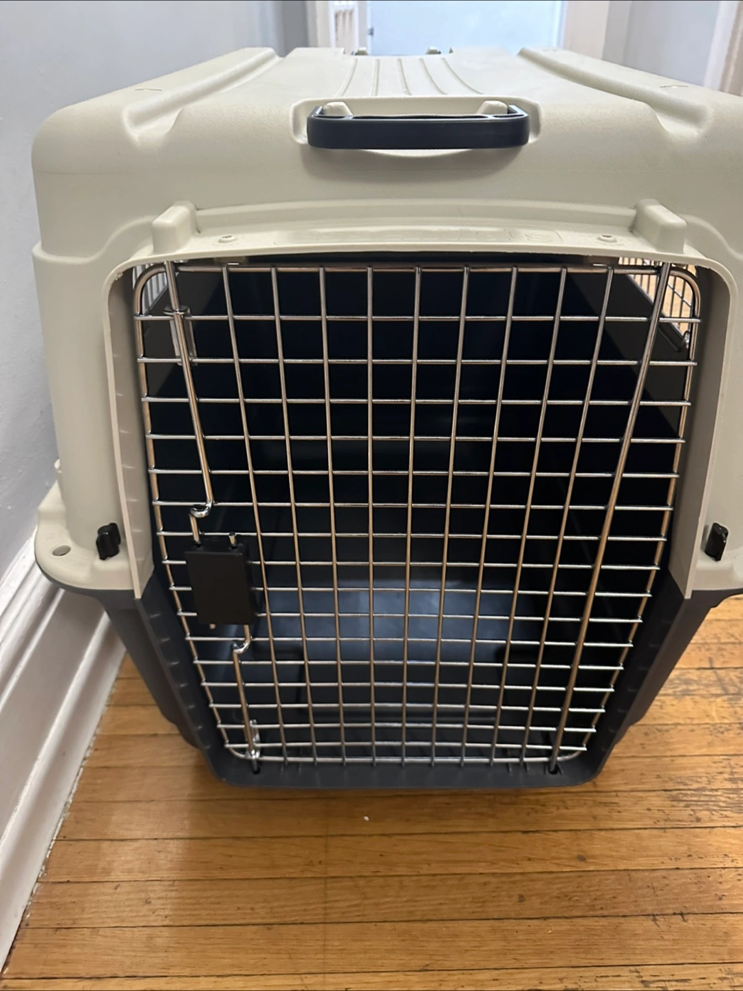 Selling Petmate Sky Kennel large dog carrier. It's in excellent condition and measures 32" long, 22" wide, and 23" high. Perfect for traveling or home while house and sleep training a dog. Our pup outgrew it too quickly, we only used it for a couple of months. Cleaned thoroughly. No cracks or bumps. It comes with original hardware and wheels (never used).