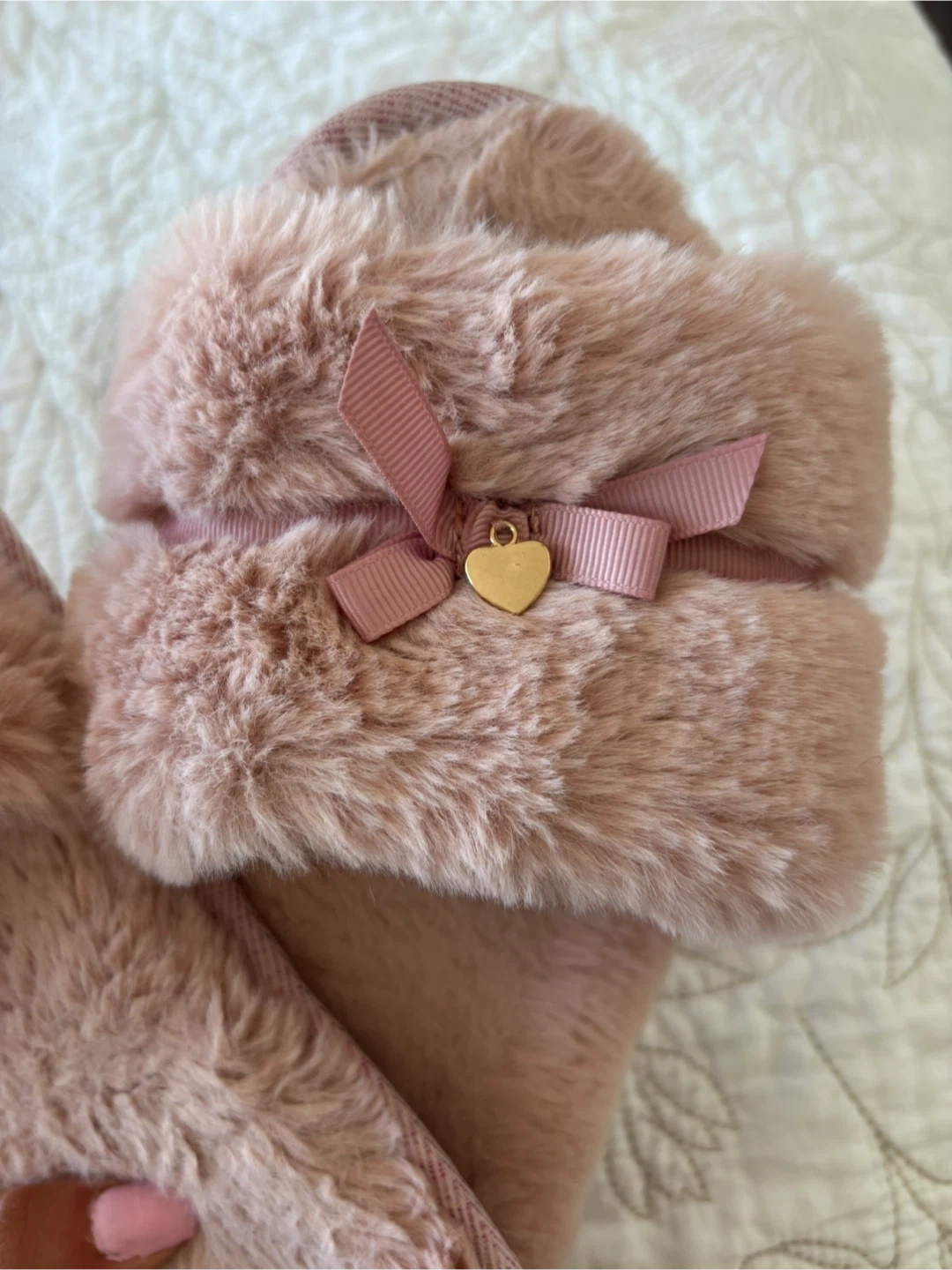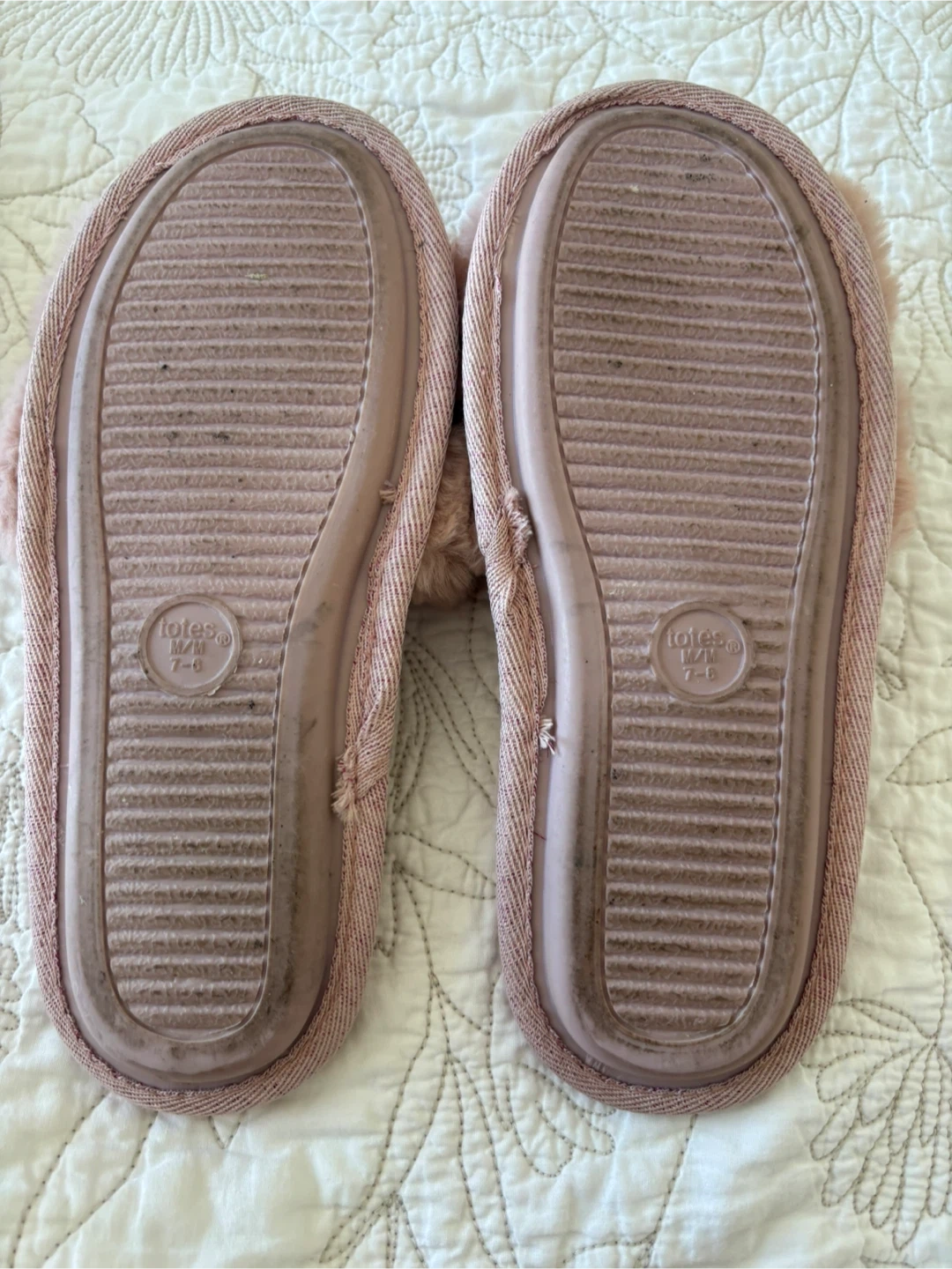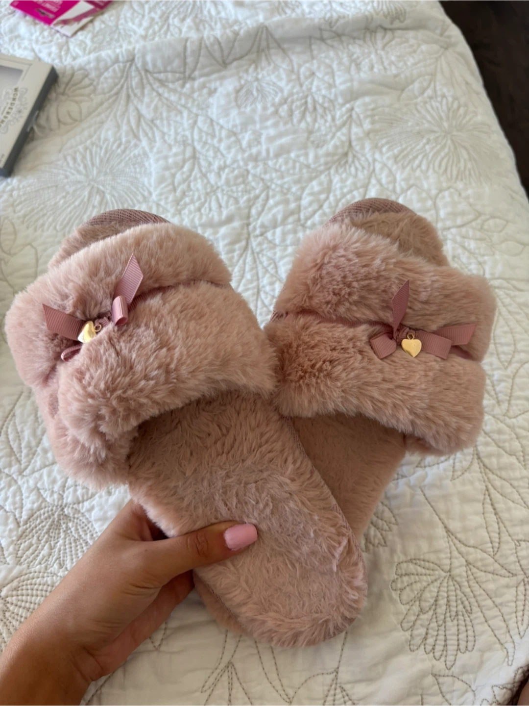 Cute pink fluffy slippers, perfect for around the house. Size M 7-6 Pickup in oakville, serious inquiries only