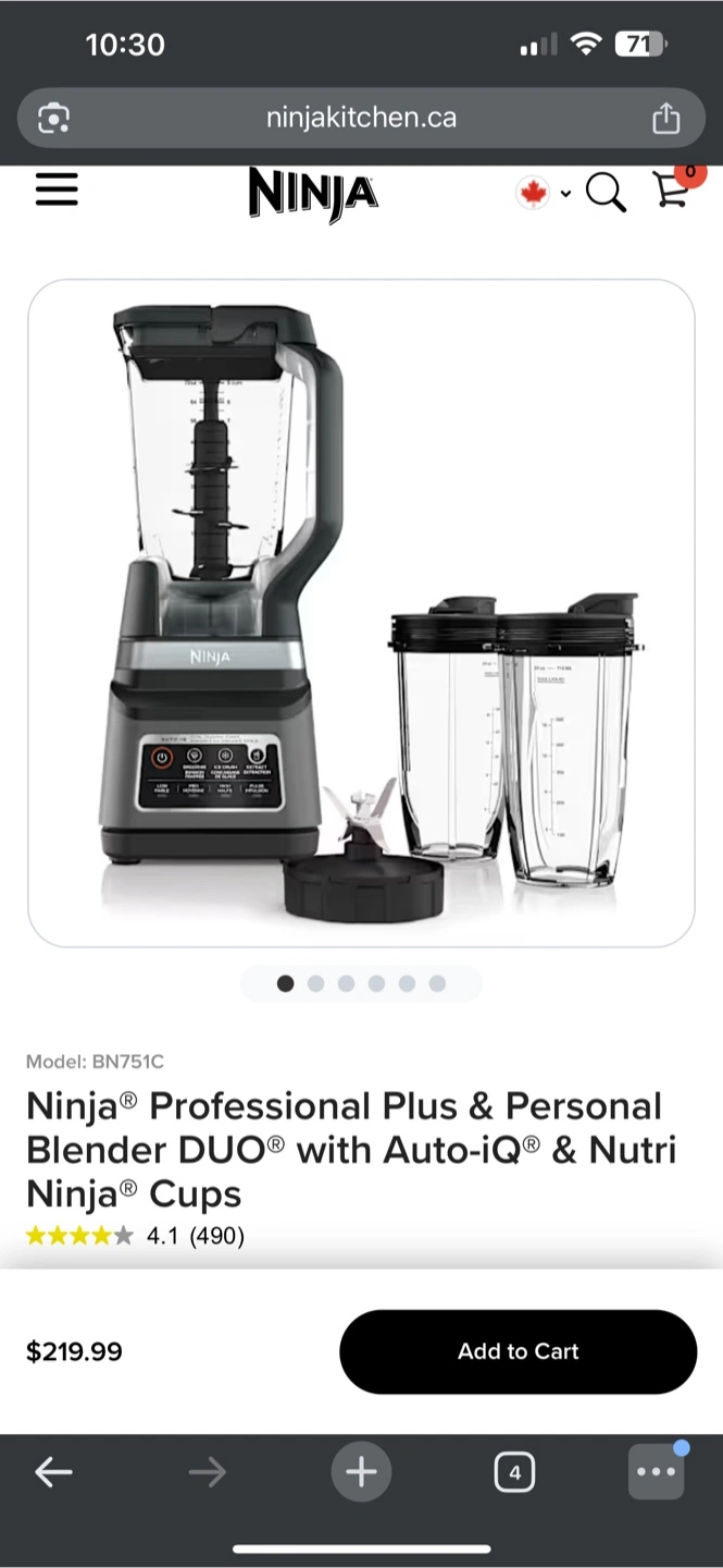 Condition: Gently used, excellent working order Original Price: $219.99 + tax Asking Price: $80 Includes: Base unit + 2 Nutri Ninja® Cups Powerful blending for smoothies, frozen drinks, and more – all in one versatile machine.